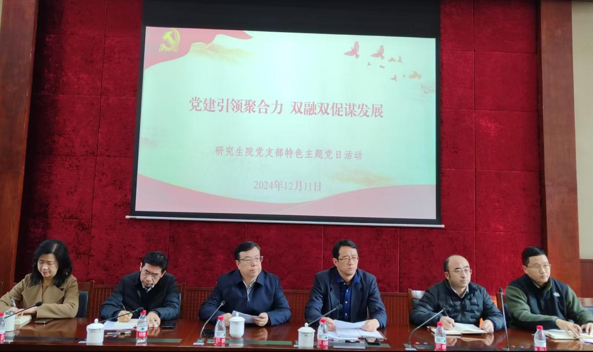 12月11日,研究生院党支部组织开展“党建引领聚合力,双融双促谋发展”特色主题党日活动,研究生院党支部全体党员参会,校长、党委副书记王进军参加学习活动,活动由党支部书记邱江主持。