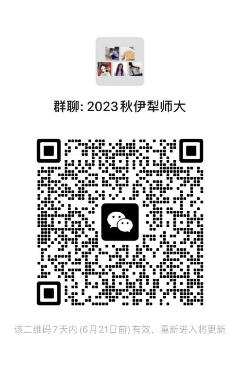 有意参加顶岗支教的研究生同学,报经导师、辅导员和所在培养单位分管领导同意后,于6月16日(星期五)12:00前将《PA视讯伊犁师大研究生顶岗支教项目报名表》纸质版(需签字盖章)提交至党委研究生工作部管理科(研究生院102办公室),并扫描下方二维码加入微信群以接收后续遴选工作通知。