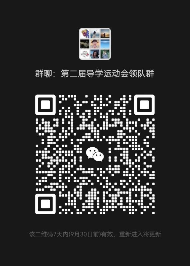 5.各参赛队伍完成报名后,请各领队于10月2日前扫码入群,以便通知后续事宜。领队群二维码如下: