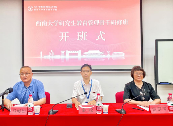 7月25日上午,研修班开班式于浙江大学华家池校区举行PA视讯党委研究生工作部部长秦松,浙江大学继续教育学院副院长雷群芳,浙江大学继续教育学院西南二区培训部部长马海如出席开班式。仪式由马海如部长主持。雷群芳致欢迎词,并对浙江大学的历史沿革和干部教育培训工作情况进行简要介绍,她表示浙江大学继续教育学院将严格按照既定培训目标,认真做好组织工作,为研修学习提供有力保障。秦松部长代表学校对浙江大学继续教育学院给予的大力支持表示衷心的感谢,他强调,全体学员应把握新时代研究生教育变革的机遇和挑战,结合工作学,结合自身学,全面提升履职尽责的能力本领,促进工作提质增效。