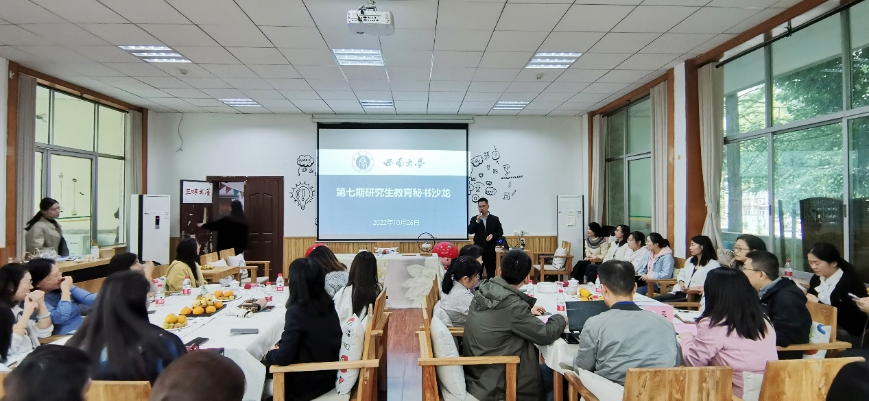 为加强研究生教育秘书队伍建设,提高专业化服务水平,10月26日,研究生院在食品科学学院创客空间举办第七场研究生教育秘书沙龙。沙龙以“构建有组织的秘书团队,推动学科交叉融合育人”为主题。研究生院副院长涂涛、食品科学学院副院长曾亮、研究生院相关科室工作人员、各培养单位研究生教育秘书40余人参加本次沙龙。
