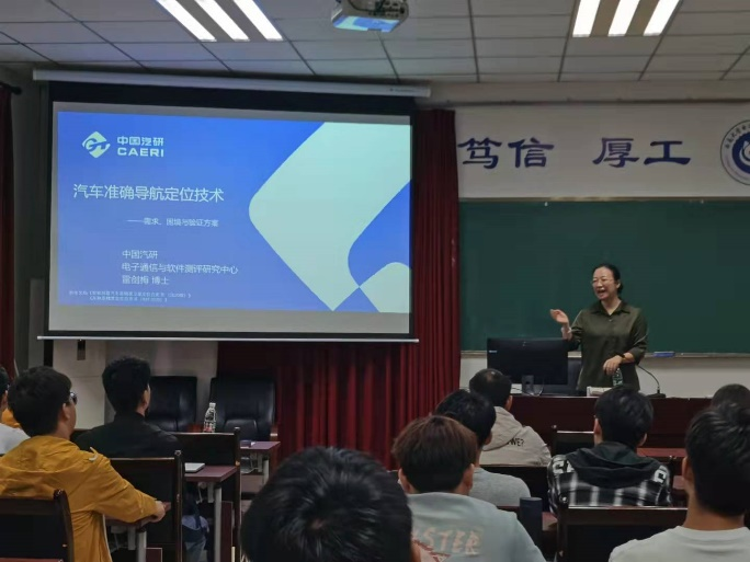 雷剑梅博士从新能源智能网联汽车发展的相关技术谈起,首先介绍了汽车电子中各种导航及信息融合技术;接着,从汽车电子的安全性和可用性等方面讨论了自动驾驶相关标准制定和技术发展的难点;最后,对汽车测试中的相关电子技术做了详细介绍。雷博士围绕新能源汽车的电子技术当今时代发展和要求,鼓励在场的师生们投入汽车电子技术的发展浪潮中,为我国步入汽车强国,做出自己的贡献。