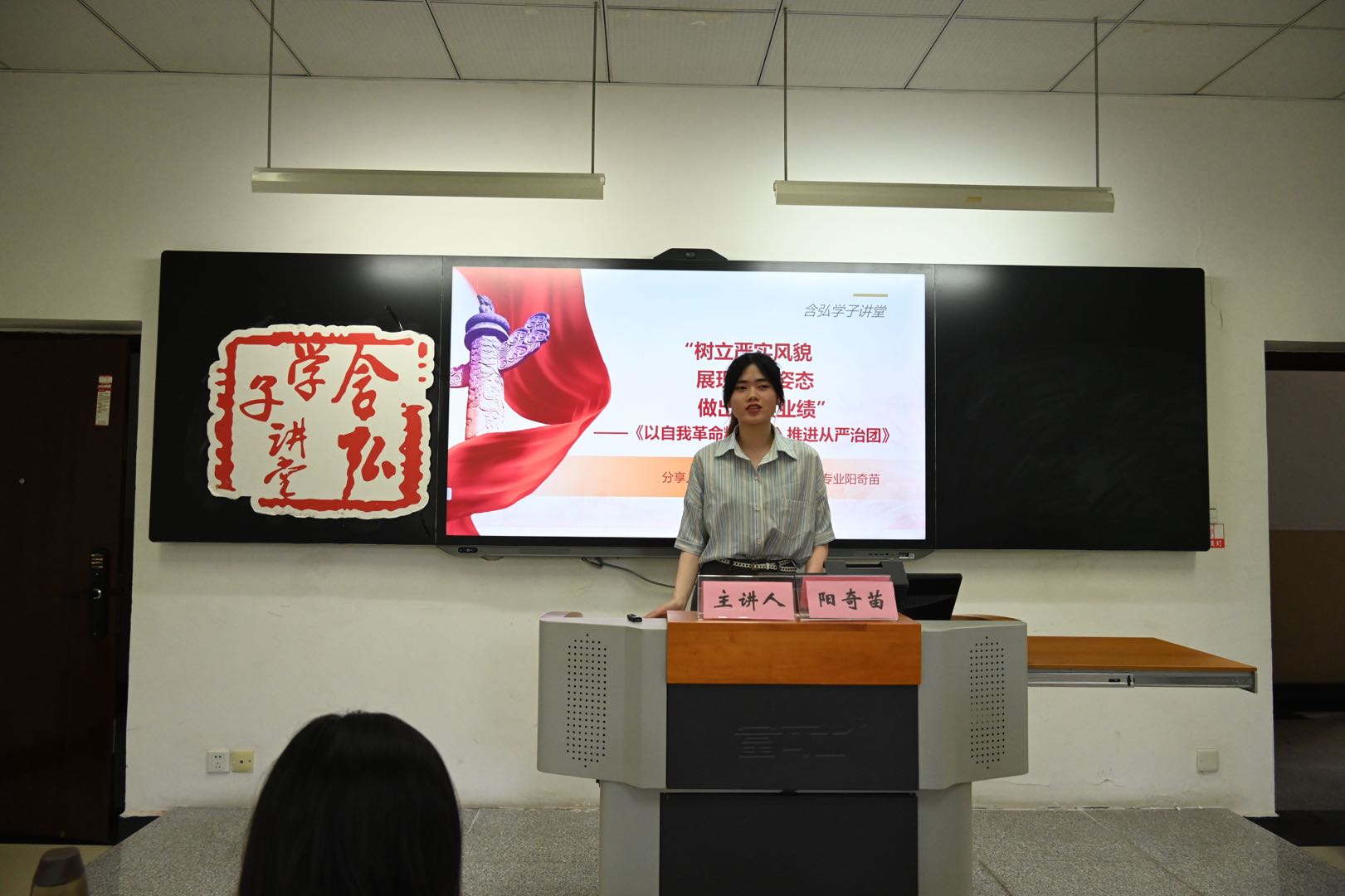 阳奇苗同学以“以自我革命精神深入推进从严治团”为主题进行了交流分享。她深刻阐述了全面从严治团在政治、思想、组织、作风、纪律等方面的建设状况。目前从严治团虽已进入系统推进阶段,但也存在局部缺陷。阳奇苗认为,全面从严治团的关键在于团的工作和建设治理的提升,要将全面从严治团的要求与全面建设社会主义现代化国家的目标相结合,号召共青团组织与共青团干部做出扎实业绩,献礼党的二十大。