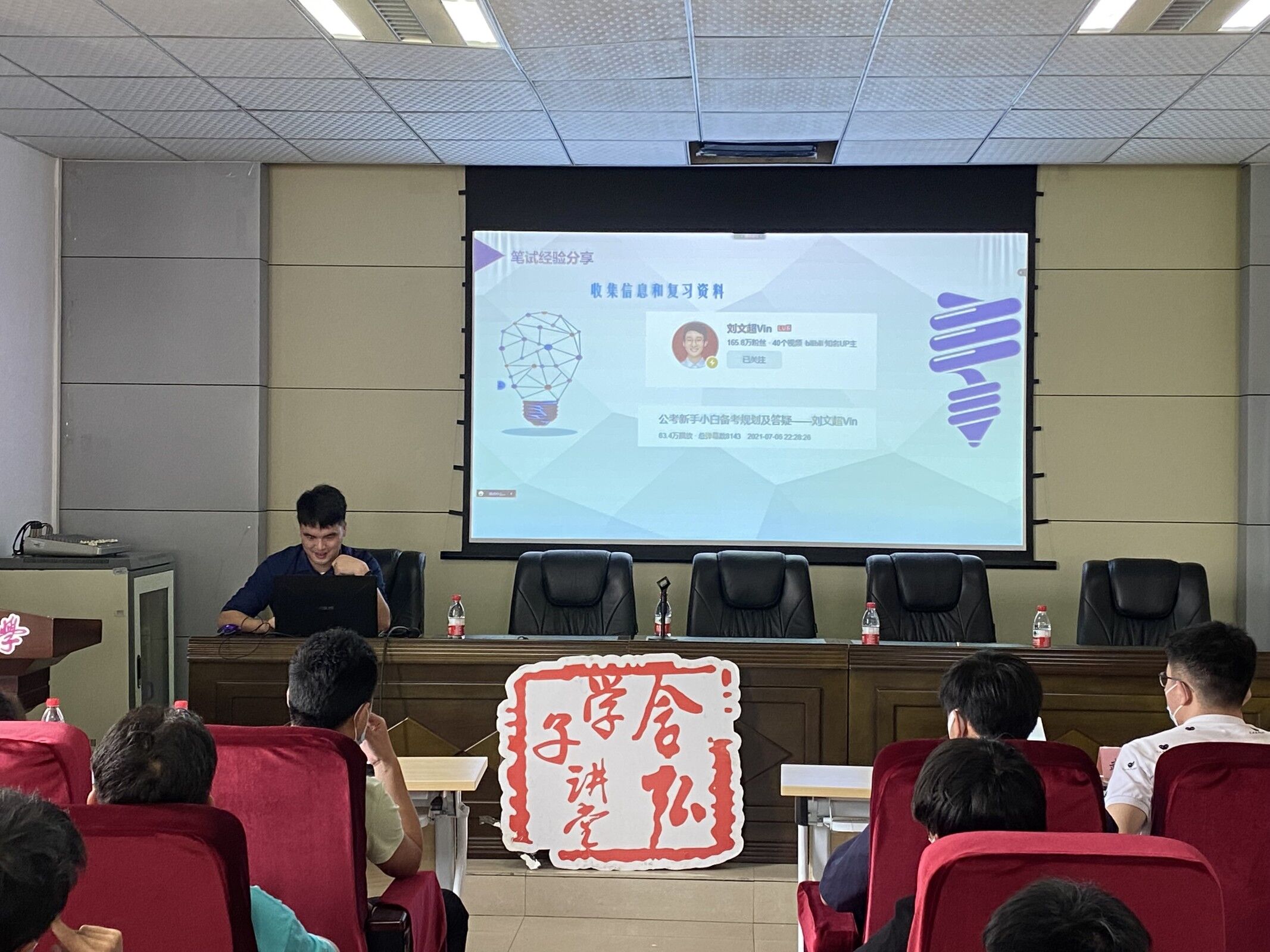 魏志强同学分享了自己求职及考取公务员的经历,为大家解决了求职考公时的自我定位、求职考公时的方向选择以及如何准备笔试面试等问题。