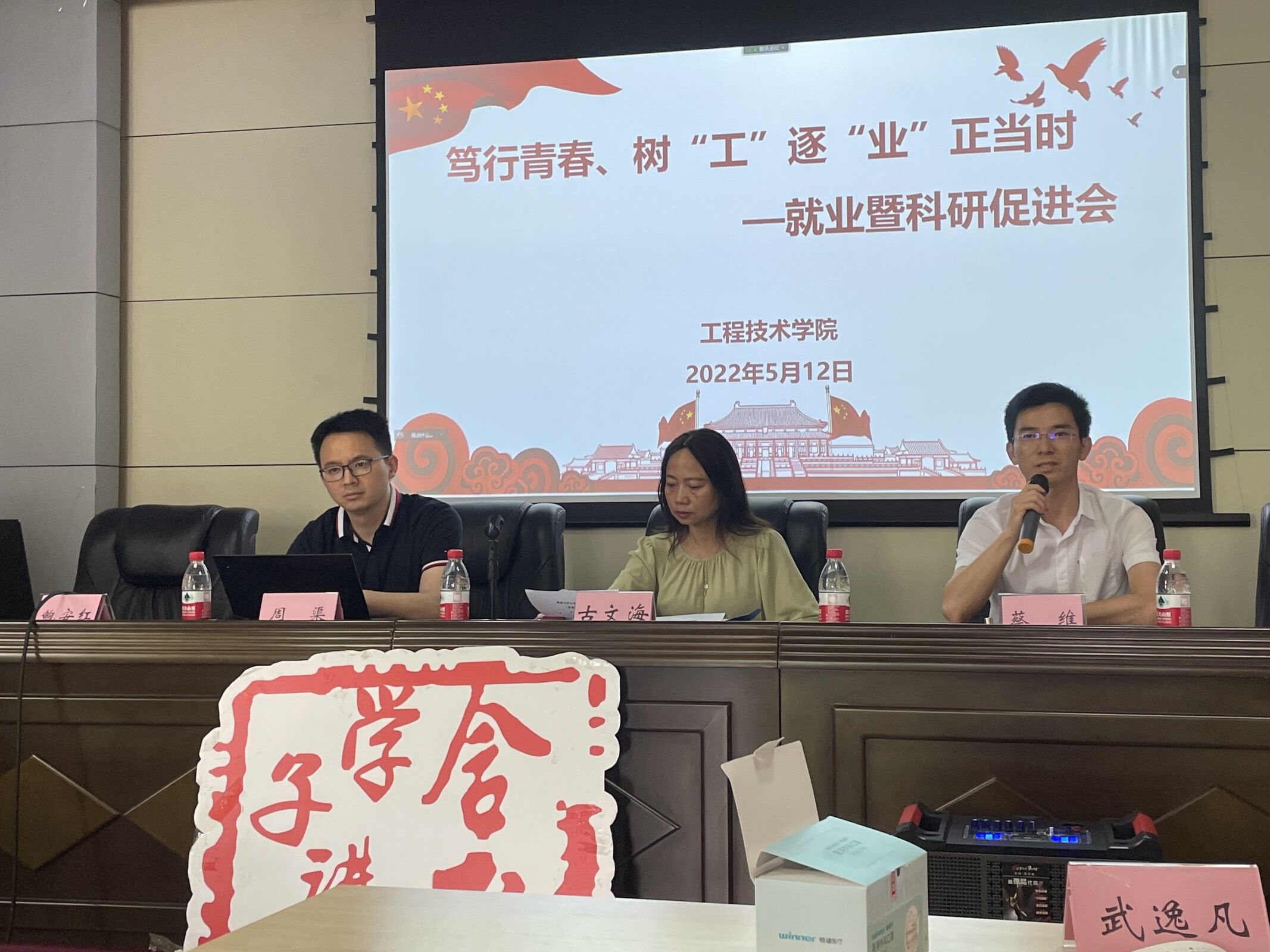 2022年5月12日下午,由PA视讯研究生会主办、工程技术学院研究生会承办的含弘学子讲堂之 “笃行青春,树工逐业正当时”就业科研分享会在工程技术学院401教室举行。土木类鲍安红老师、农电类周渠老师、机械工程类蔡维老师、土木工程类蒋仲铭老师四名老师受邀参加了活动。本次分享会由来自工程技术学院2021级硕士研究生肖雪同学担任主持人。2019级农业机械化工程专业研究生武逸凡、2019级农业电气与自动化专业研究生杨路、2019级机械电子工程专业研究生魏志强、2019级土木与建筑环境专业研究生董耀宗四名同学担任主讲人,他们分别从就业和科研两个方面进行了分享,学院研究生会、2020级和2021级研究生全体成员参加了此次分享会。