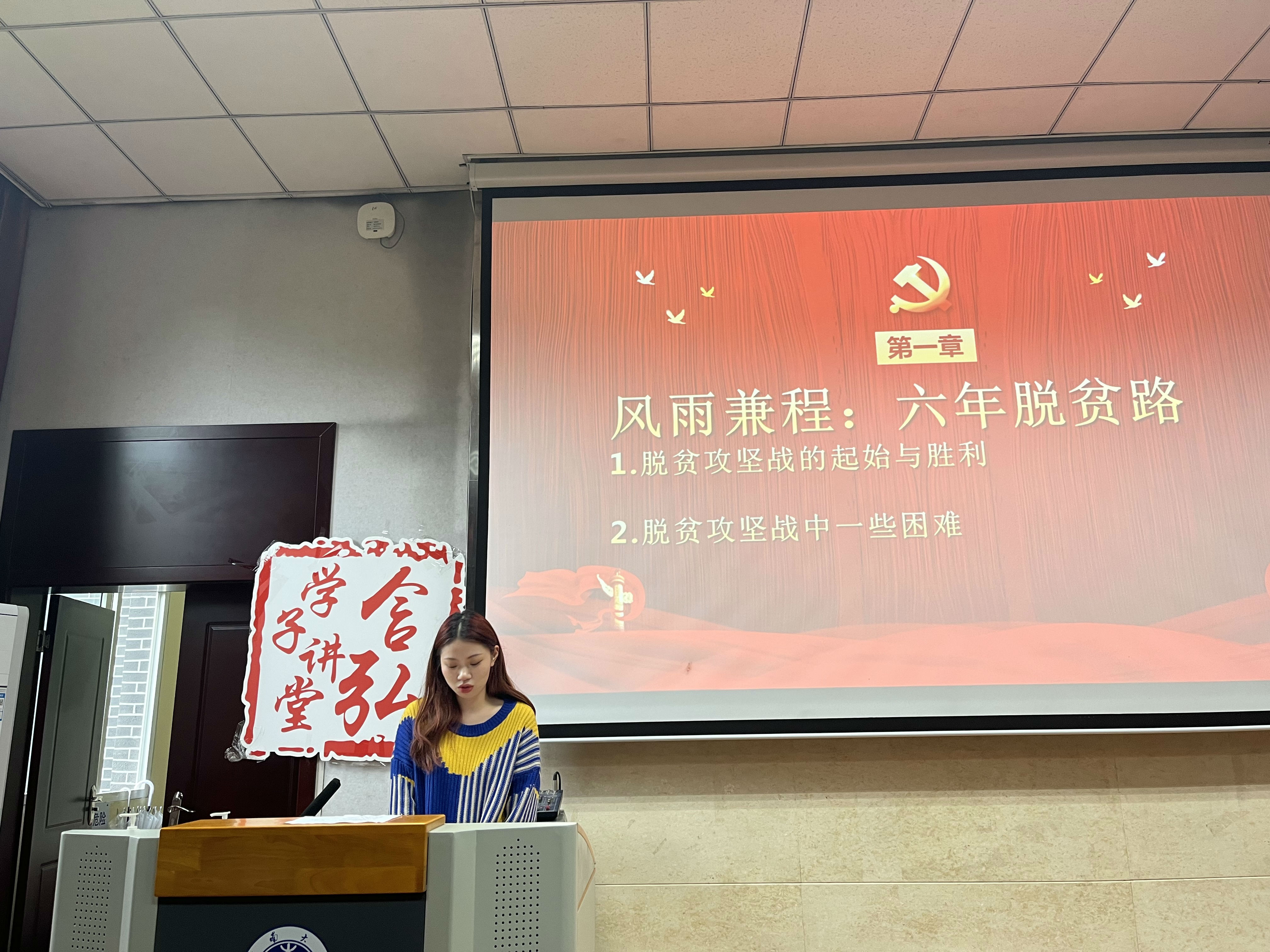 赵华延同学分享了“新闻人眼中的脱贫攻坚后评估”,结合个人在贵州的脱贫攻坚后评估工作经历进行了讲述。主要内容有以下三个方面:一、阐述了风雨兼程的六年脱贫路,向同学们展现了脱贫攻坚战的历程与遇到的困难;二、以贵州为例,向同学们展示了巩固脱贫攻坚的成果;三、为谱写乡村振兴新篇章,迎接党的二十大召开,赵华延认为应充分发挥脱贫攻坚的精神力量。