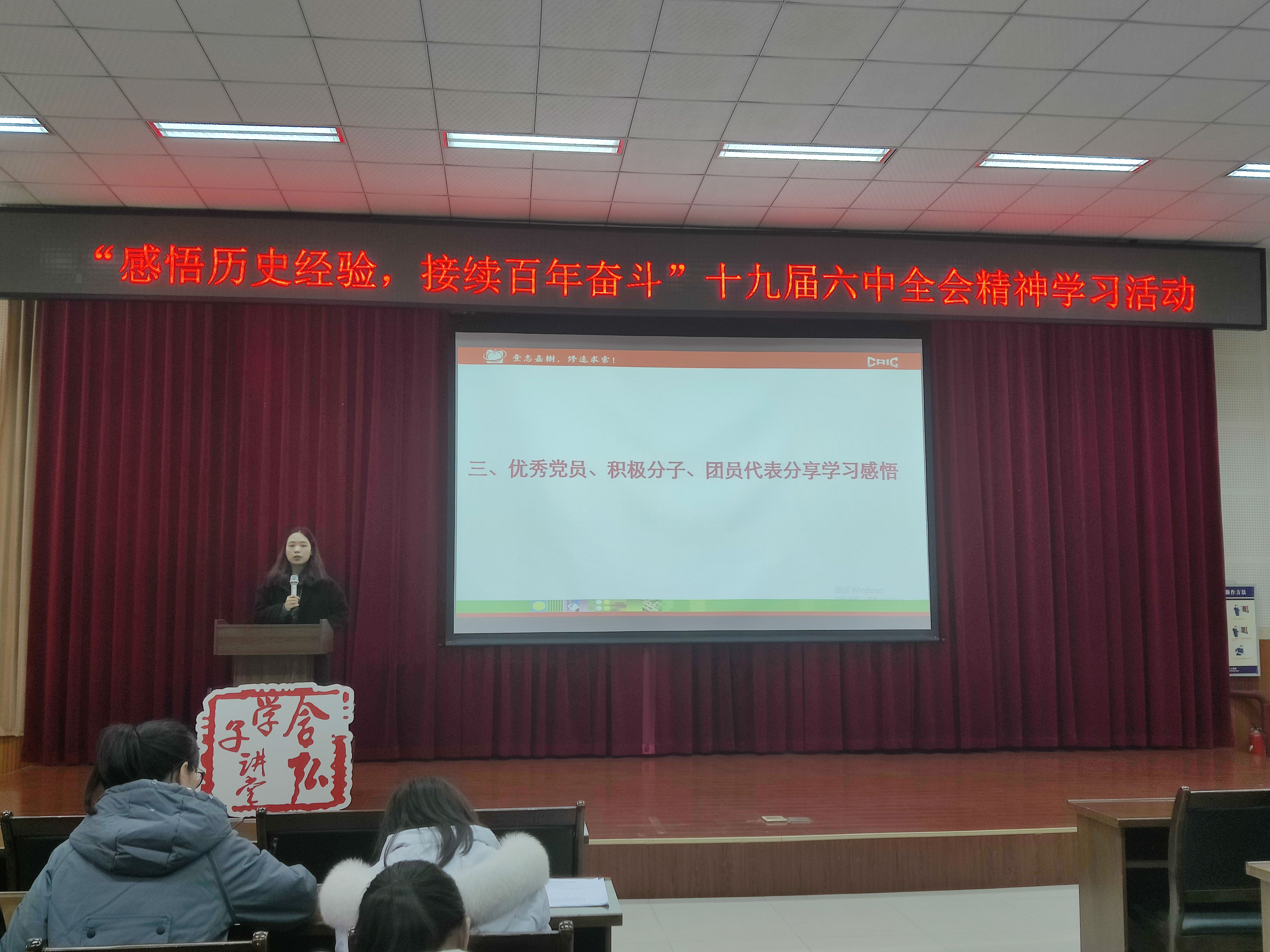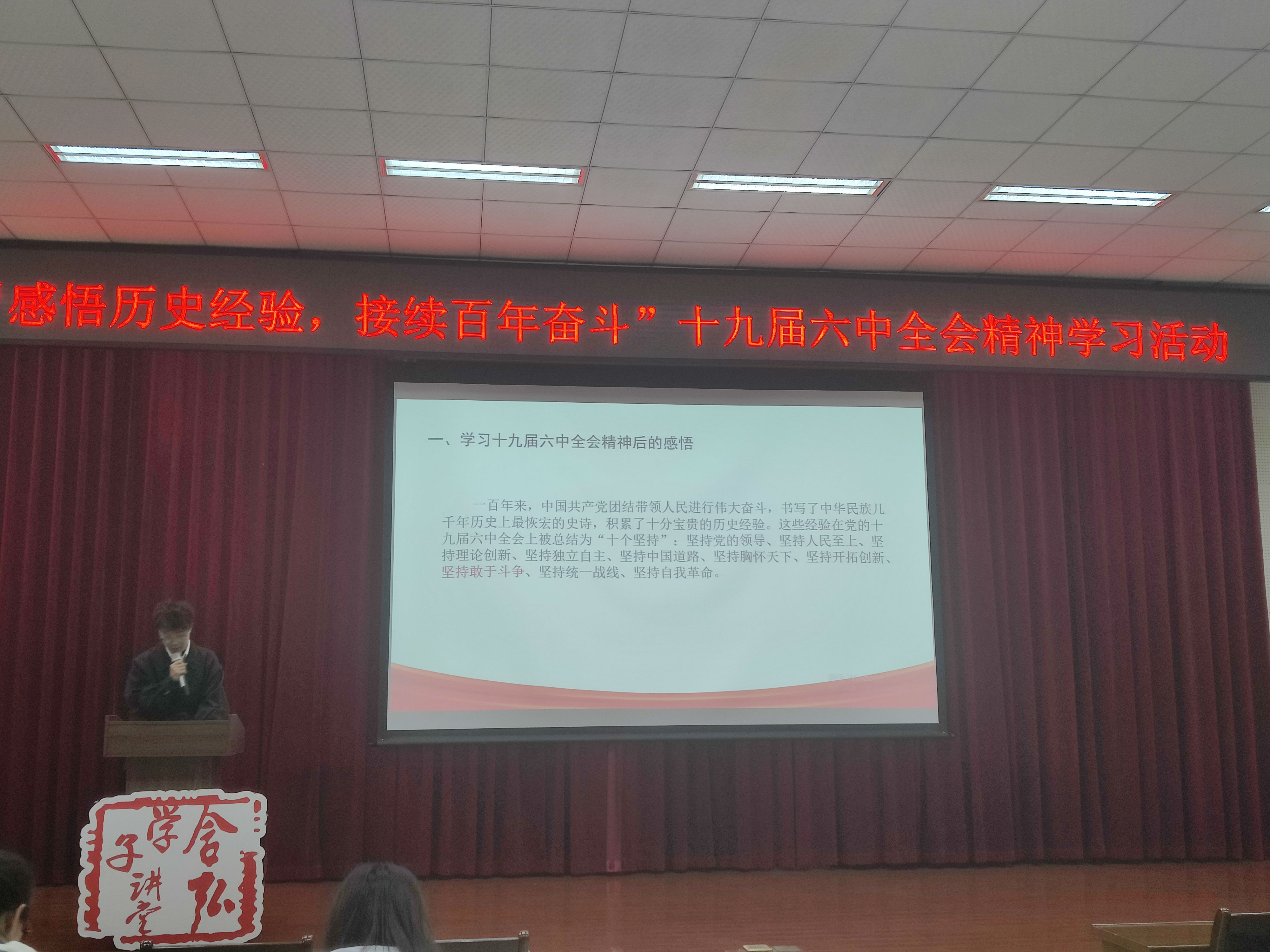 2021年12月1日,由PA视讯研究生会主办、柑桔研究所研究生会承办的含弘学子讲堂之柑桔研究所“感悟历史经验,接续百年奋斗”报告会在柑桔研究所公寓二楼报告厅举行。在此次报告中,老师同学们学习了党的十九届六中全会精神,回顾了党的光辉历程,共同分享了自己的学习感悟。活动取得圆满成功。