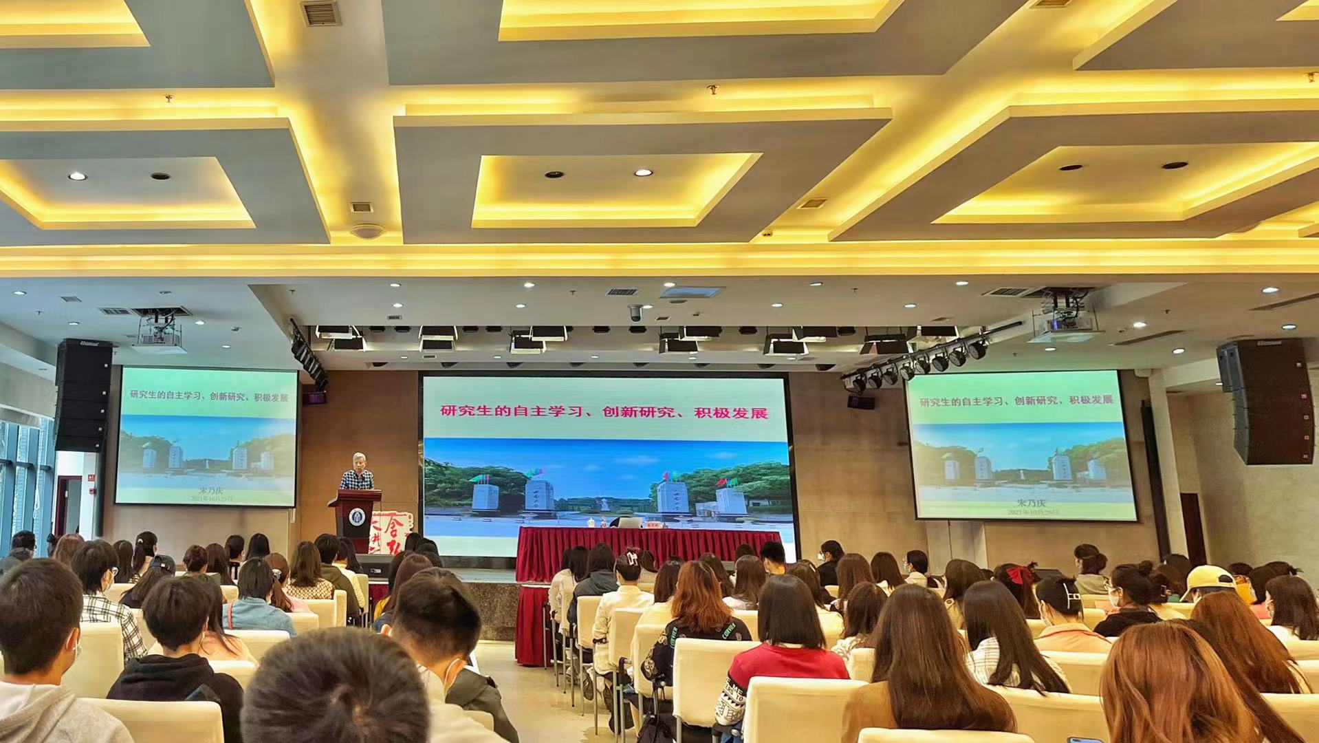 宋乃庆教授全面介绍了学校研究生教育改革的相关举措,认为学校研究生教育经过深化改革,取得了突出成就。他还重点介绍了学校在学风建设和处理学术不端方面做出的努力,强调科学道德和学风建设是研究生教育的重要支撑,是不可逾越的底线,广大研究生应该坚守科学道德,抵制学术不端,展现新时代研究生的风气与底色。宋乃庆教授勉励在场师生坚持自主学习、创新研究、积极发展,从“三唯”(唯上、唯书、唯师)走向“三不唯”(不唯上、不唯书、不唯师),学会“四会”(会学习、会做事、会与人交往、会做人),树立正确奋斗目标,做一个于社会、国家有用的人。