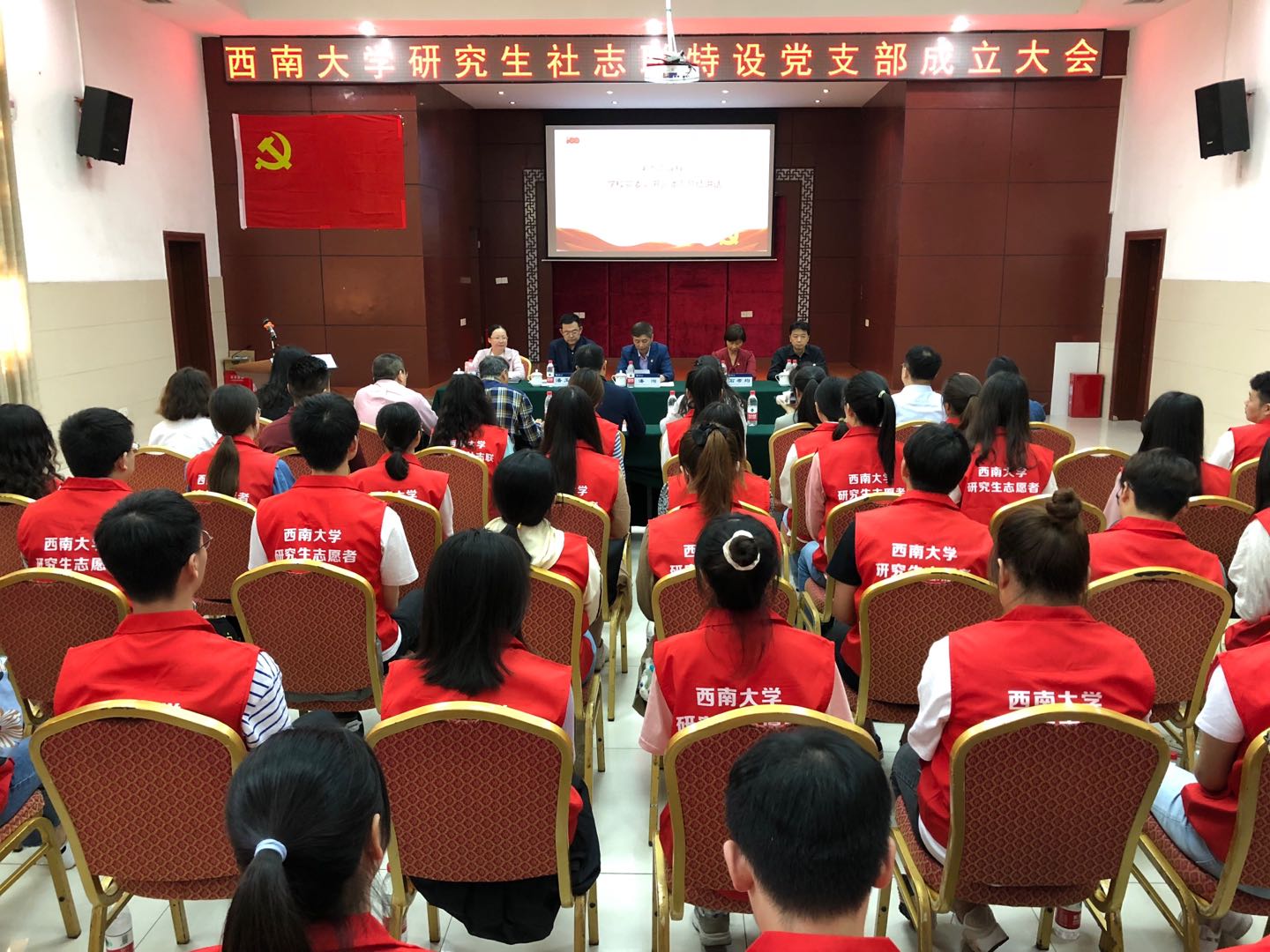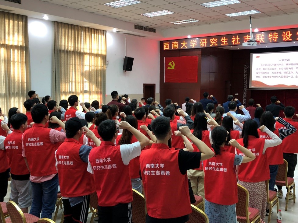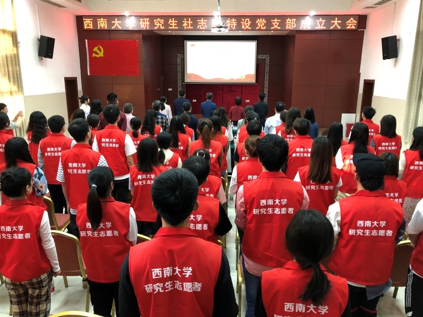 4月30日下午,学校研究生社会实践与志愿服务联合会特设党支部成立大会在研究生院八一礼堂召开,学校党委副书记潘洵,党委组织部副部长潘玉锋,研究生院院长、党委研究生工作部部长石孝均,研究生院副院长黄大宏,党委研究生工作部副部长胡娟以及各二级培养单位党委副书记出席会议,社志联特设党支部全体成员参加会议。
