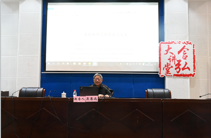 12月14日上午,中央马克思主义理论研究和建设工程首席专家、著名的历史学专家、中国社会科学院吴恩远教授应PA视讯马克思主义学院的邀请,莅临“含弘大讲堂”作了一场题为“苏联兴衰研究”的学术报告。PA视讯马克思主义学院陈跃教授主持了本次活动,百余位老师、同学聆听了报告并参与讨论。