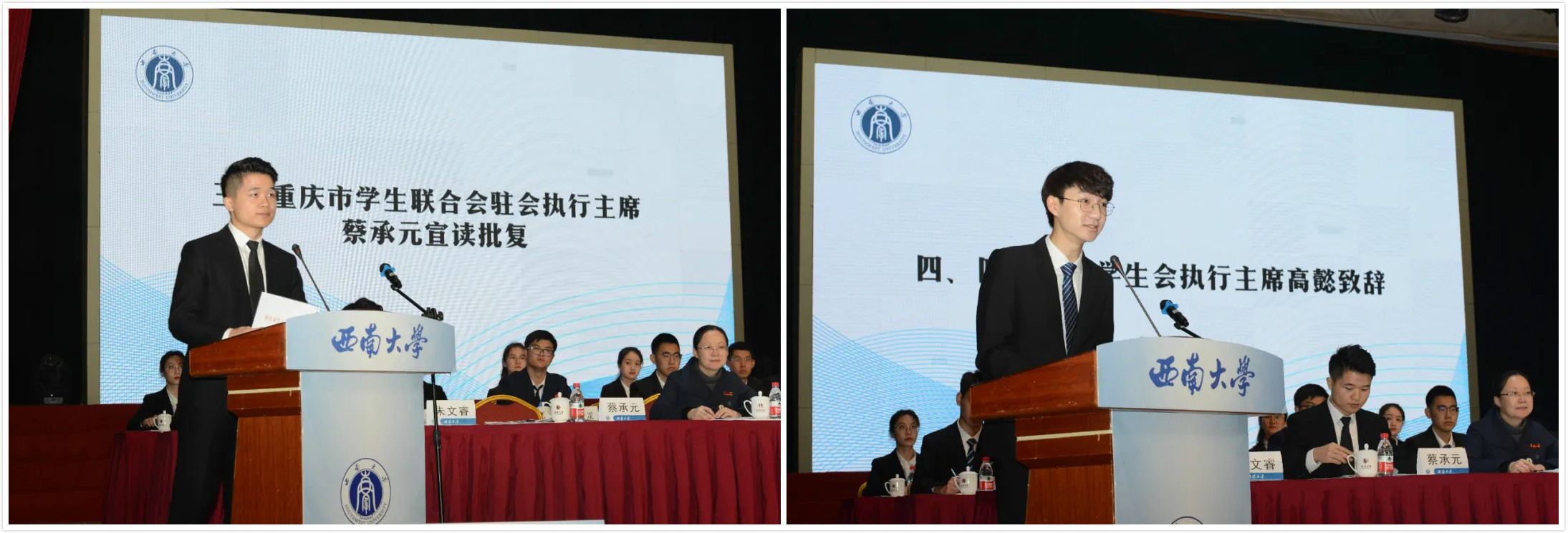 校党委副书记潘洵出席开幕式并发表讲话,潘书记充分肯定了两年来学生会组织(学生会、研究生会,以下简称学生会)改革的成绩,他代表学校党委对学生会提出了三点希望:一是不断增强政治性,建设忠诚可靠的学生会;二是不断增强先进性,建设砥砺奋进的学生会;三是不断增强群众性,建设根植同学的学生会。