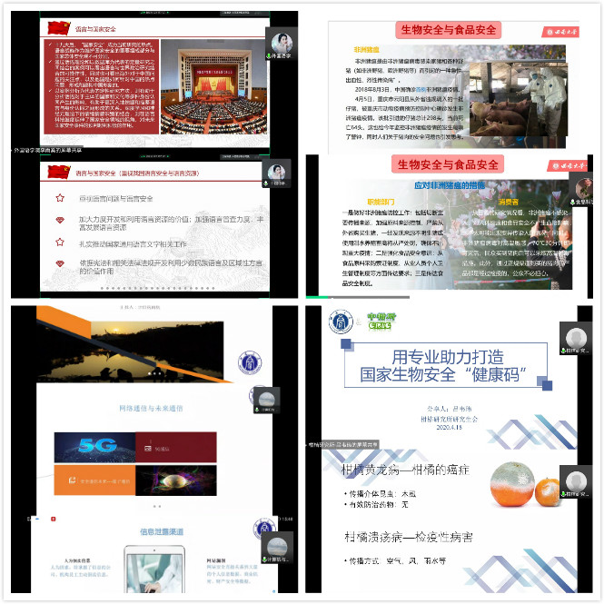 随后,经过前期申报,来自8个二级研会的代表们纷纷结合学科专业特色,多角度向参会成员介绍了国家安全的相关知识。