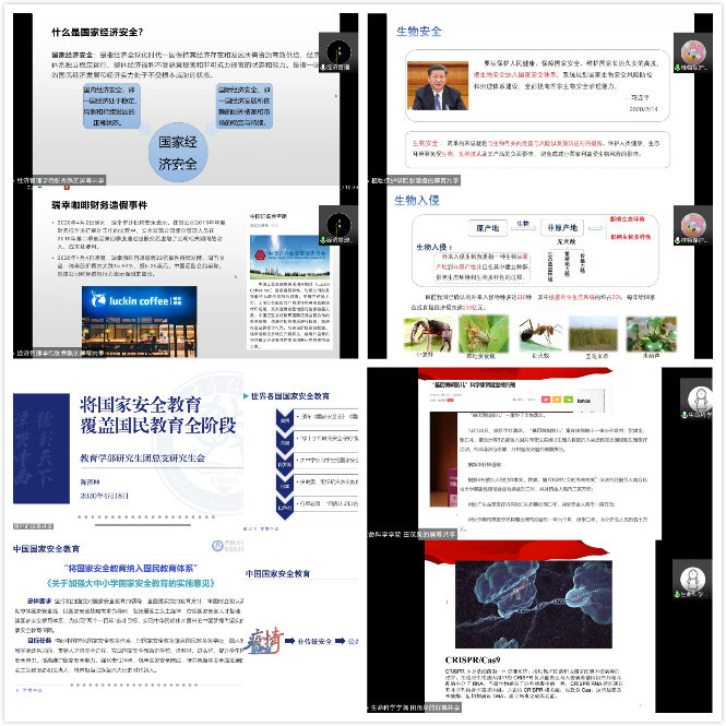 教育学部研会代表陈泽坤同学从世界各国国家安全教育特色、中国国家安全教育两方面进行讲解,并结合当下疫情实际深入分析了构建中国特色国家安全教育体系和把国家安全教育覆盖国民教育全阶段在提高维护国家安全能力,强化责任担当,筑牢国家安全防线,培养担当民族复兴大任的时代新人等方面的重要性。