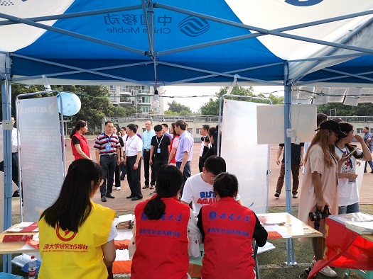 校研究生会秉承着“引导同学、发展同学、代表同学、服务同学”的宗旨,为迎新工作做了充分的准备,分别在三运、竹园和橘园设立迎新服务点。耀眼的红色马甲,小小的西大校徽,温暖亲切的笑容,每一位志愿服务者都带着饱满的热情投入到本次的新生服务中,耐心的为每一位同学答疑解惑,指引方向,还贴心的为新同学准备了藿香正气液,以备不时之需。