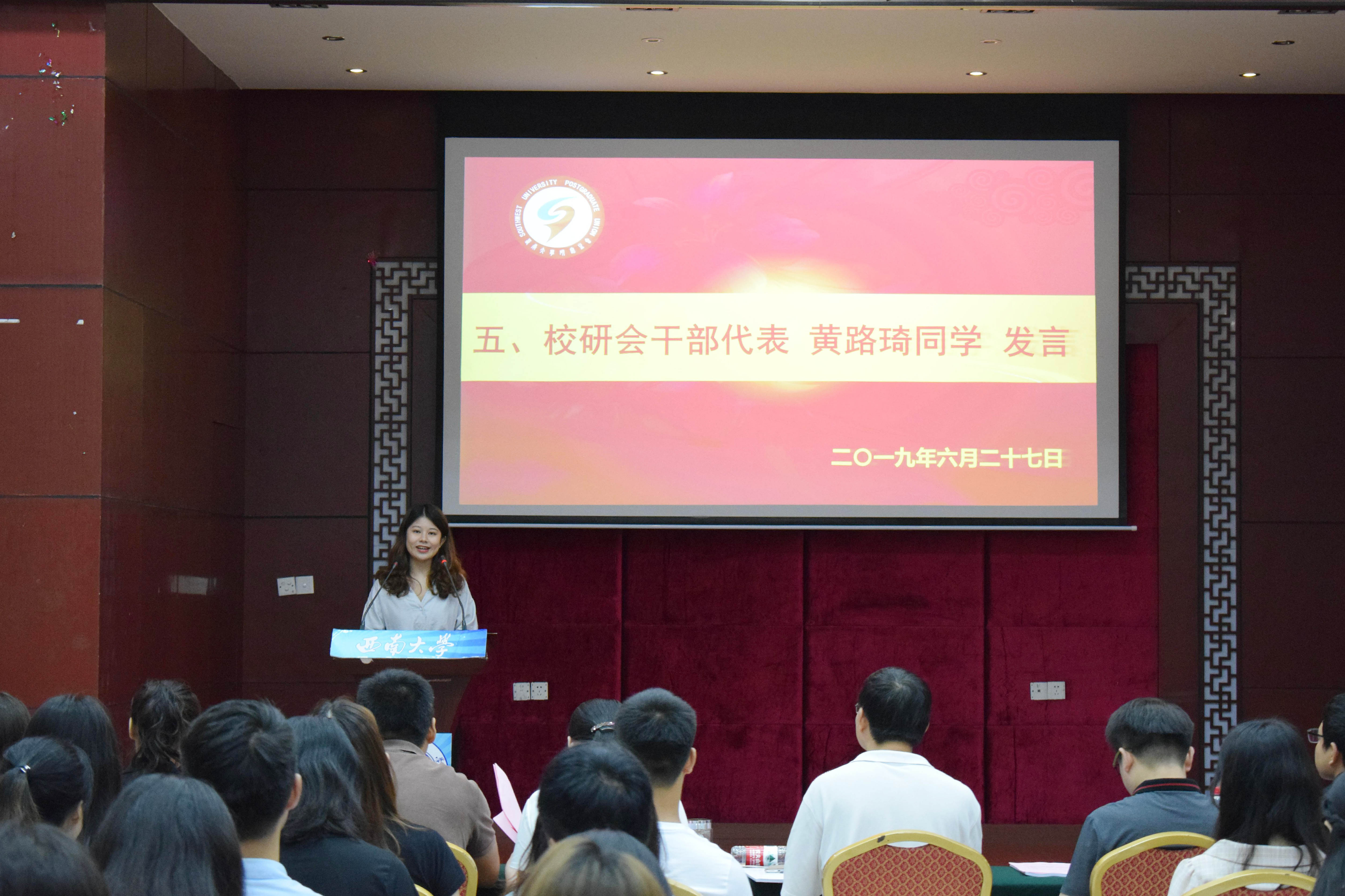 校研会干部代表黄路琦同学发言,饱含深情地分享了自己在校研会学生工作中的所思所感。
