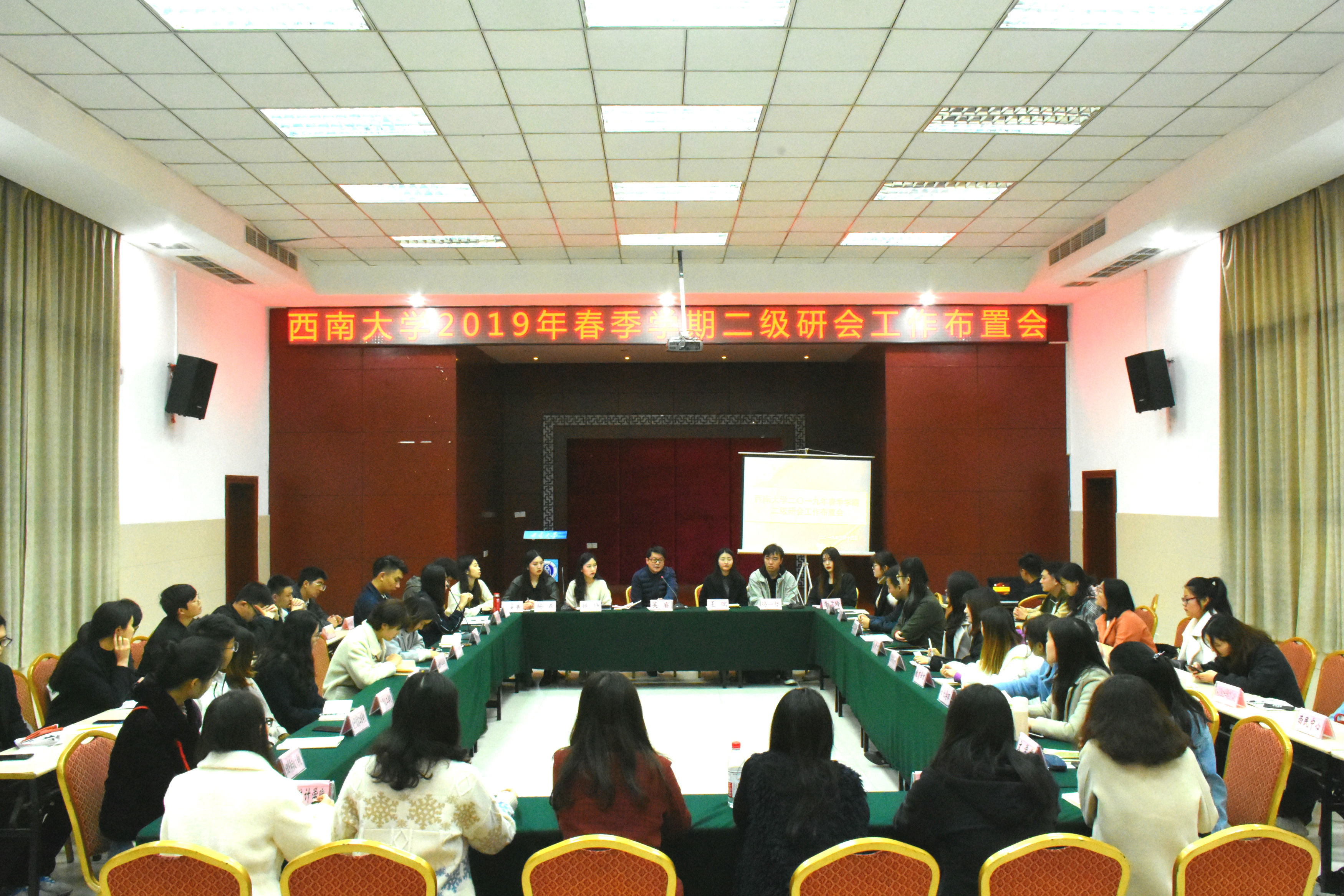 3月14日上午,2019年春季学期二级研究生会工作布置会在八一礼堂举行。本次参会人员有党委研工部教育管理科科长吴睿老师、校研究生会主席团成员以及各二级培养单位研究生会主席。会议由校研究生会副主席王瑞同学主持。