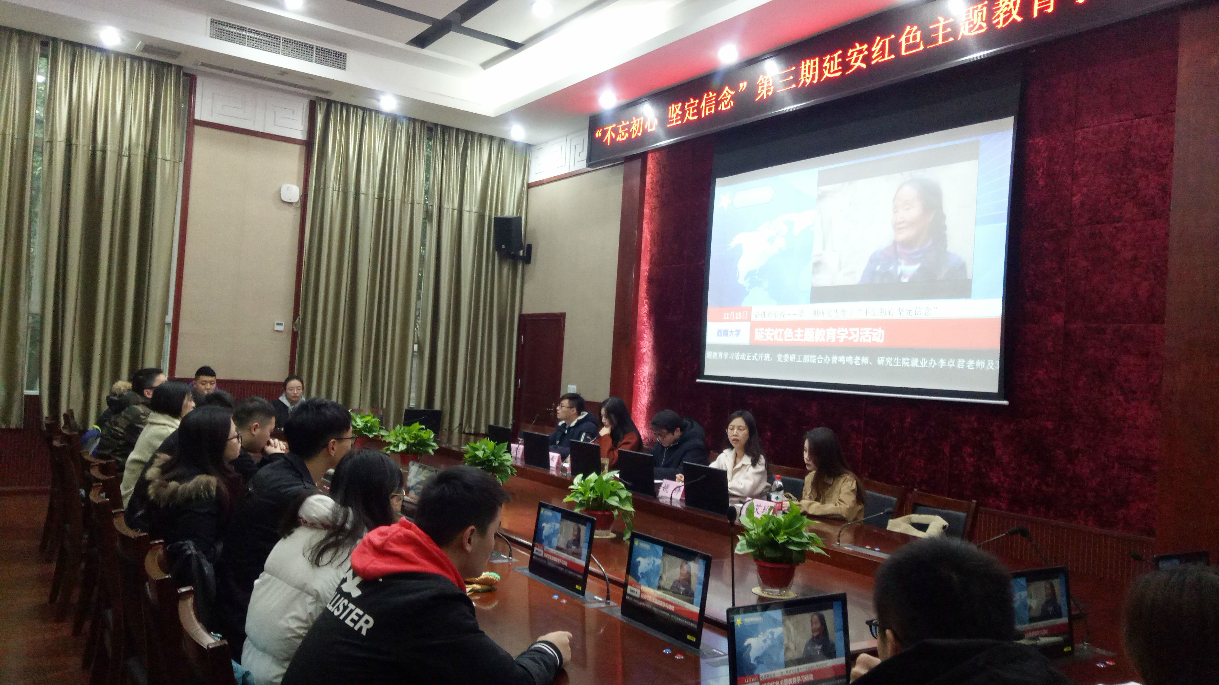 为进一步加强对“延安精神”的学习,展现学员们的学习成果,12日上午,校研会开展了“不忘初心 坚定信念”第三期延安红色主题教育学习班总结会。学校党委研工部思政办主任吴睿老师、校研会主席团成员、三十余名延安红色教育班学员参会,共同总结此次延安学习的经验及收获。