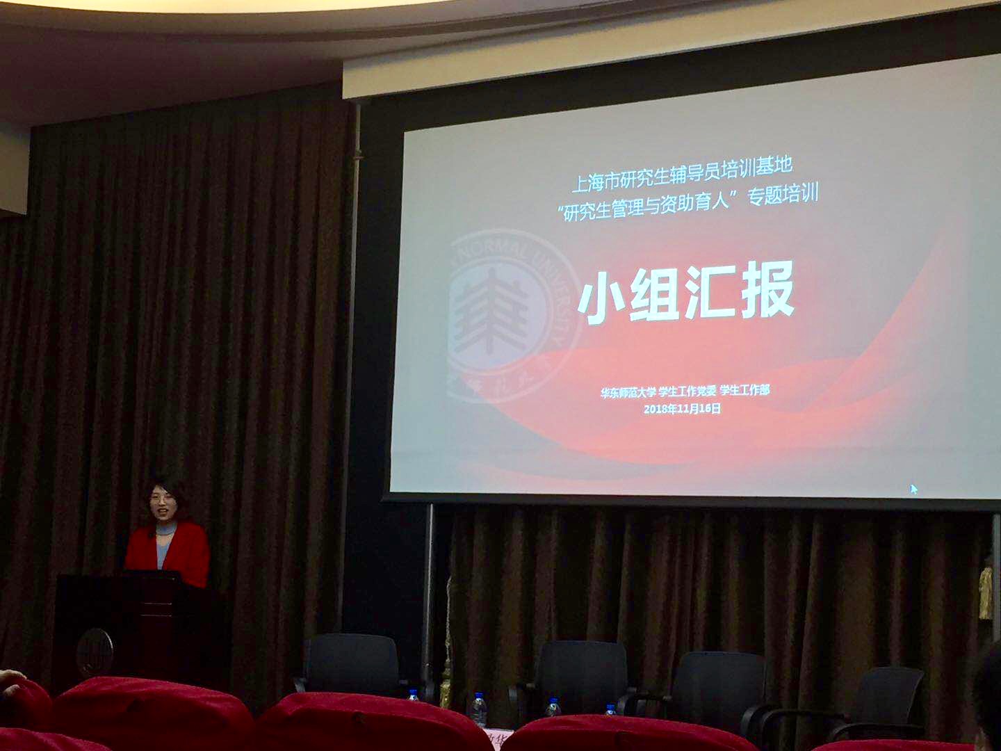 为进一步加强高校研究生辅导员队伍建设,提升研究生辅导员队伍素质和能力,2018年11月13至16日,上海高校研究生辅导员基地“研究生管理与资助育人”专题培训班在华东师范大学举行。来自全国50所高校的120名辅导员参训,PA视讯党委研究生工作部副部长胡娟、食品科学学院研究生辅导员胡孜参加了此次培训。