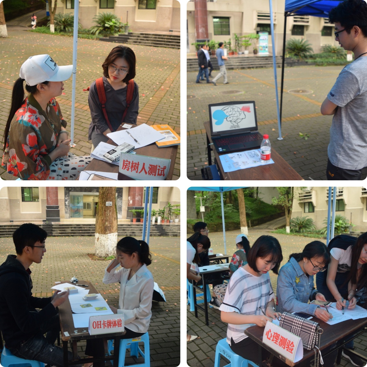 26日上午,在北区樟树林成功举办宣传日活动。此次活动共分为五个版块:“绘张房树人,你心听我言”房树人测验、“Oh,遇见真实的自己”Oh卡牌体验、“更懂你心理”心理测验、“走近心理学”心理学知识科普和“你我心连心”寄明信片。活动形式新颖,不仅普及了心理健康知识,拉近了大家与心理学的距离,还提高了同学们对心理健康的重视程度。参与此次活动的同学纷纷表示,每个小活动都趣味十足,在娱乐的过程中丰富了知识,也学会了情绪调节技巧,同时还改善了心理状态,促进了心理健康。