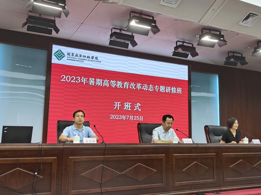 7月25日上午,专题研修班举行开班仪式,国家教育行政学院党委副书记、纪委书记李雪明出席开班式并致辞,寄语学员们要践行理论联系实际的马克思主义学风,努力把学习体会和成果转化为谋划工作的方法和改进工作的措施,为推进教育高质量发展做出新的更大的贡献。