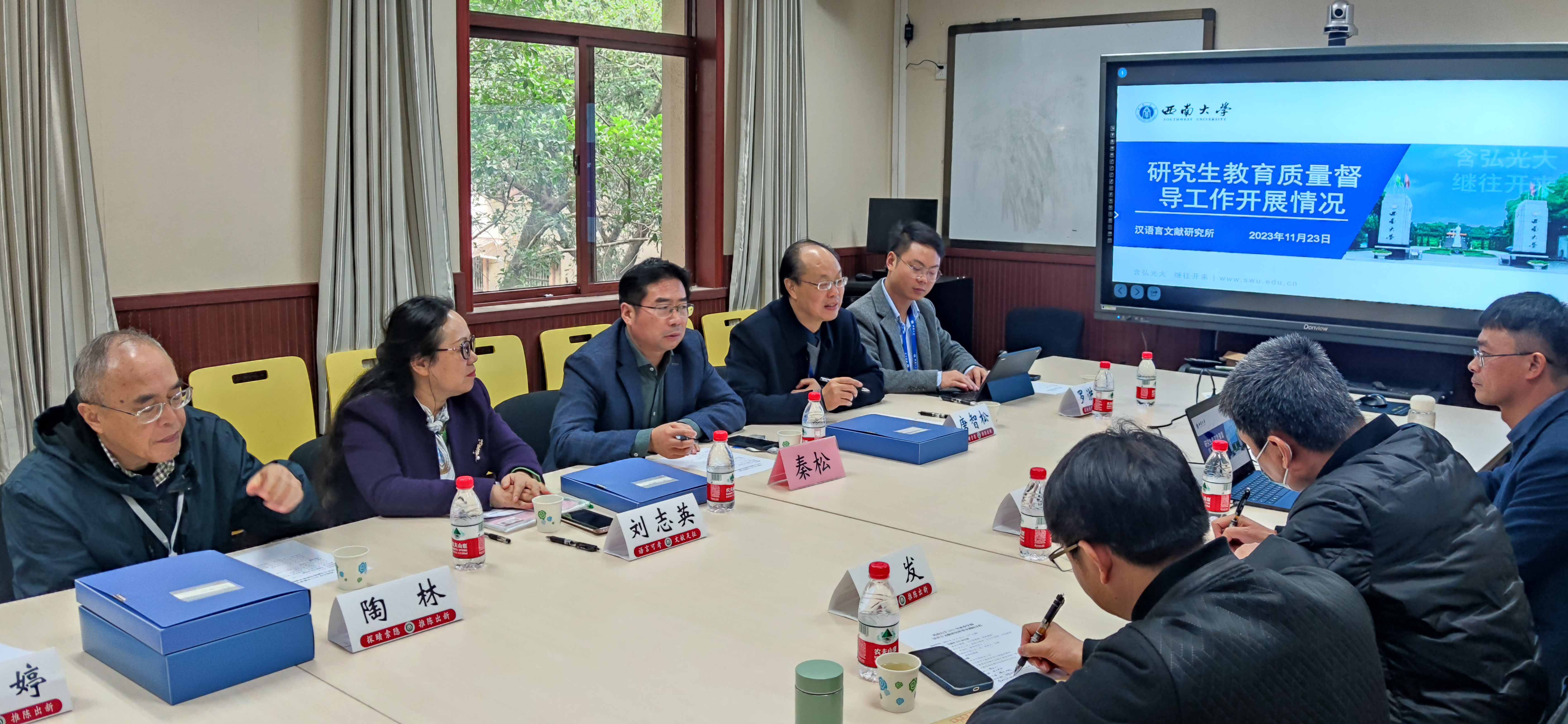 11月23日上午,研究生院院长邱江教授、党委研究生工作部部长秦松以及第三届研究生教育指导委员会专家委员唐智松教授、刘志英教授、陶林教授等一行前往外国语学院、历史文化学院 民族学院、汉语言文献研究所开展督导调研。