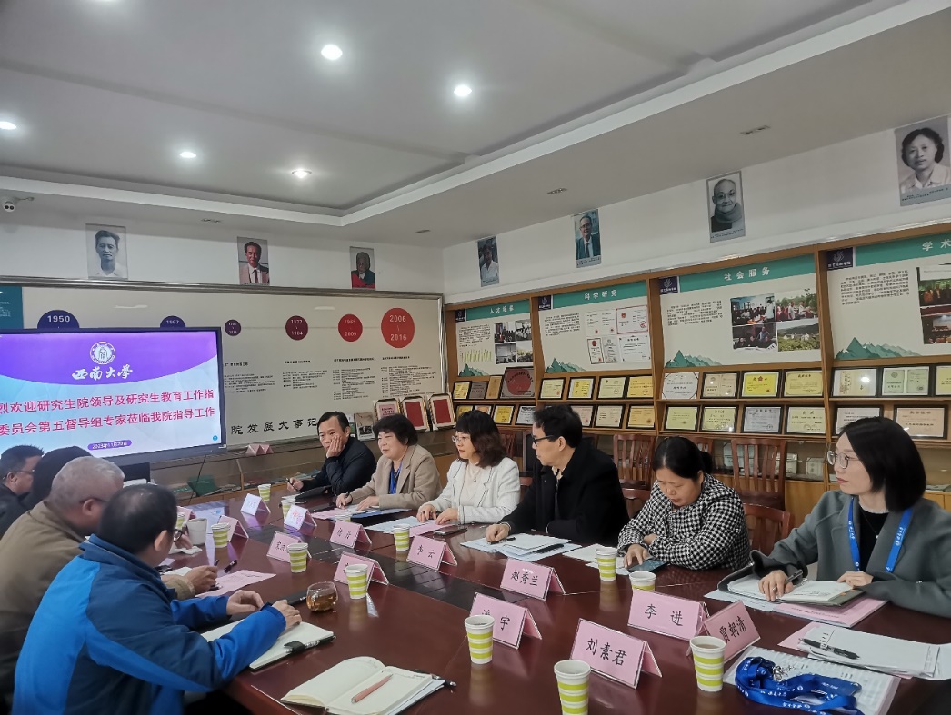 11月20日上午,研究生院副院长杨丹教授、副部长周敏以及第三届研究生教育指导委员会专家委员郑曙明教授、李云教授、赵秀兰教授、郑永强教授等一行前往园艺园林学院、水产学院开展督导调研。
