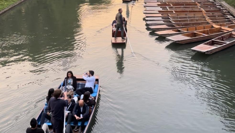 康河之畔,一场别开生面的泛舟活动悄然上演。同学们轻舟荡漾,穿梭于康河的柔波之间,仿佛置身于一幅流动的画卷。在如此诗意的场景中,他们不约而同地向撑着长篙的外国友人朗诵起《再别康桥》,那深情款款的诗句与康河的潺潺流水交相辉映,营造出一种跨越时空的文化共鸣。这一刻,徐志摩笔下的康河之美仿佛重现眼前,让同学们在感受自然之美的同时,也深刻体会到了中英文化的交融与碰撞。