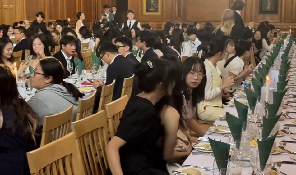 夜幕降临,剑桥大学最为传统的社交盛事——正式晚宴(Formal Dinner)拉开帷幕。同学们身着盛装,并排而坐,举止间尽显优雅。在这场盛大的宴会上,同学们不仅品尝了地道的英国美食,更在专业老师的指导下,学习并实践了西方餐桌礼仪。这一环节让同学们体验到了剑桥独有的社交文化,并在潜移默化中提升了跨文化交流的能力。