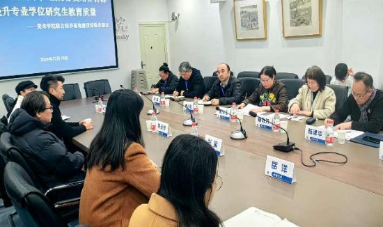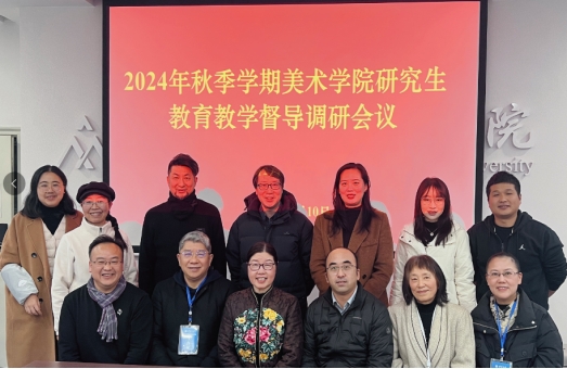 陈刚副院长作“聚焦专业实践环节,践行分类培养目标,提升专业学位研究生教育质量”联合培养基地建设工作报告。他介绍,学院现有重庆美术馆与深圳福田区第二外国语学校两大研究生培养基地,旨在整合美术领域资源,拓宽研究生实践、学术与职业发展路径。学院今年两次督导检查了基地的教学与实践融合、师资队伍建设及资源利用情况,发现存在理论与实践脱节、双导师协作不紧密、资源挖掘不足等问题。对此,学院计划进一步优化教学模式,强化师资队伍,深化资源共享与合作,提升人才培养质量与社会服务成效。学院向督导组展示了近年来研究生的优秀作品,包括今年7幅入围全国美展的优秀作品。