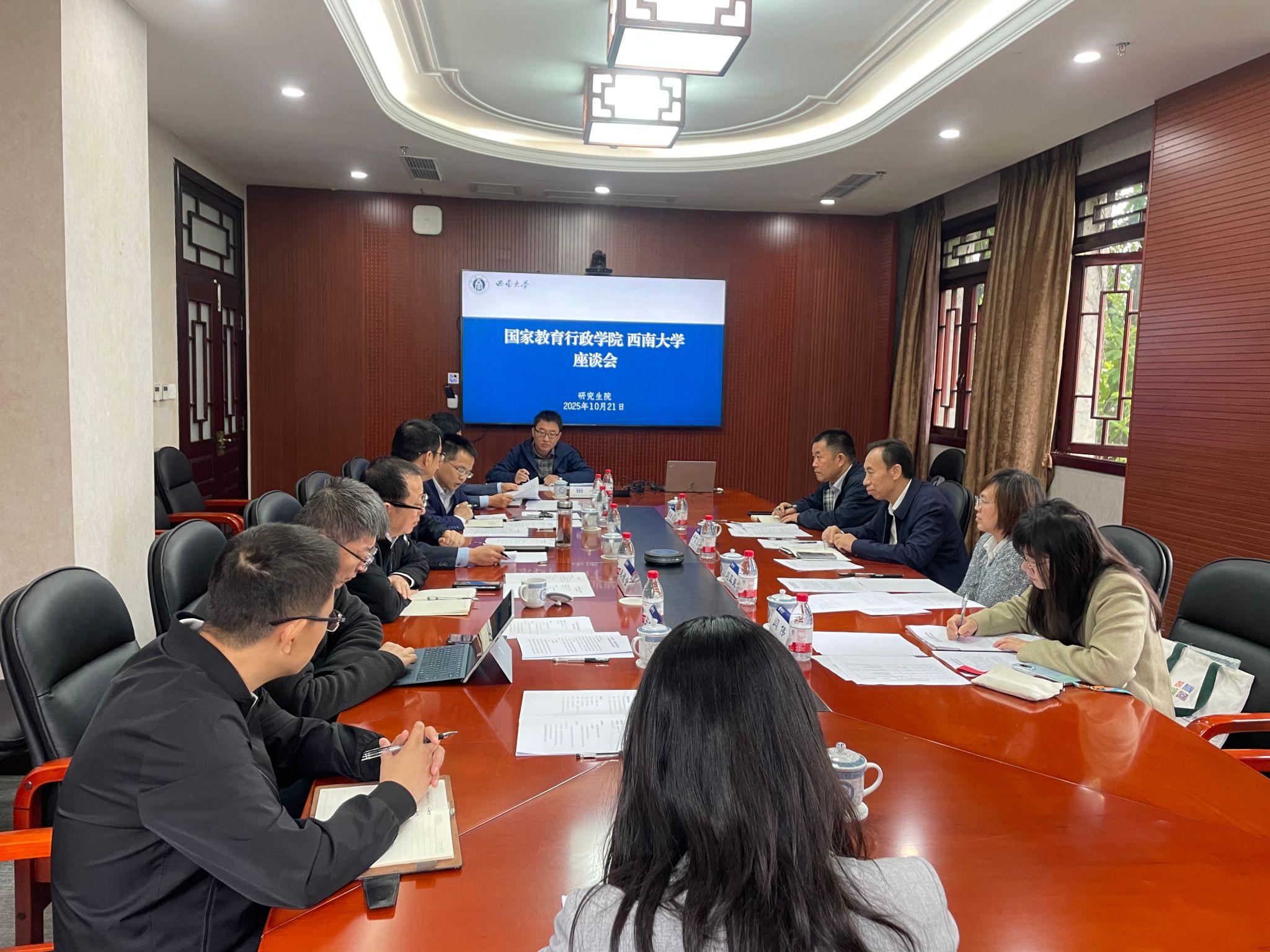 1021日上午,国家教育行政学院副院长于京天一行来校访问,双方围绕研究生联合培养及科研合作等议题进行座谈交流。学校副校长邱江、教育学部部长朱德全以及相关职能部门人员参加座谈会。会议由研究生院副院长李华青主持。