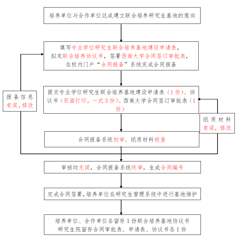 7.合同留存:研究生院、培养单位和合作单位各留存1份协议,合同审批表及培养基地申请表留于研究生院存档。