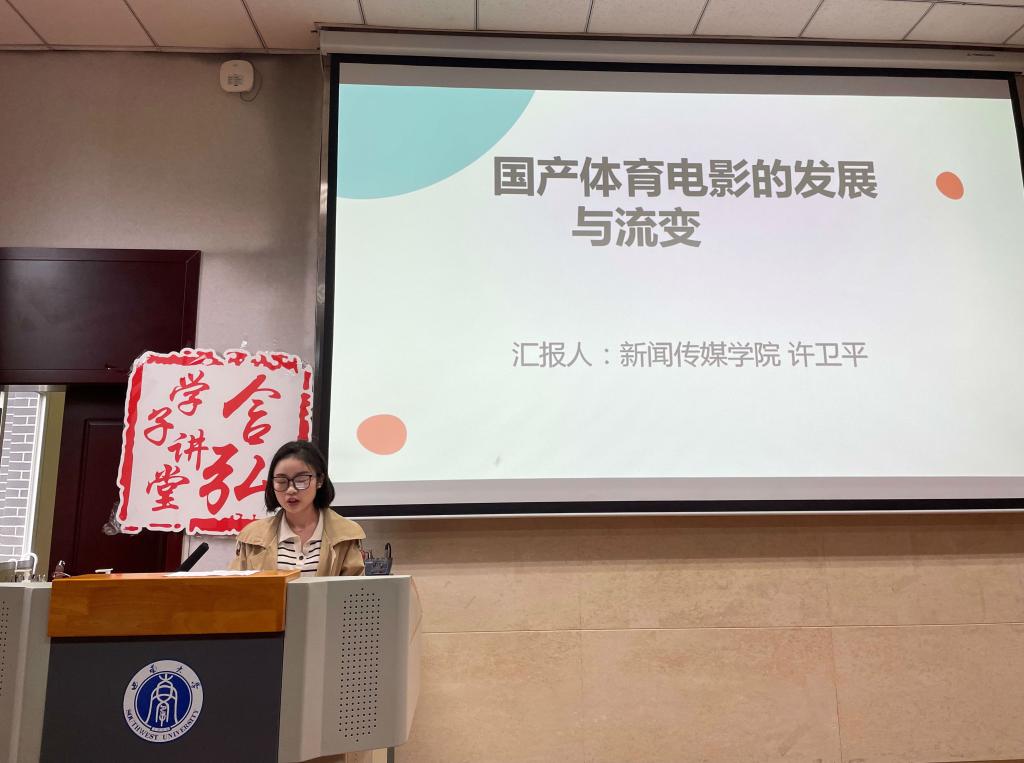 2022年北京冬奥会和冬残奥会的体育精神深深震撼感动了每个中国人,许卫平以戏剧与影视专业的视角,介绍了国产体育电影自新中国成立以来的发展与流变。首先,她从《一个人的奥林匹克》到《夺冠》为同学们介绍了自新中国成立后,体育电影发展的四个时期,并和大家探讨了目前中国体育电影存在的问题。最后,许卫平认为中国体育电影的创作对呈现一个时代的民族精神和气质有着无可替代的重要意义,同学们应该将自身所学与国家事件相结合,践行“文明其精神、野蛮其体魄”的精神。