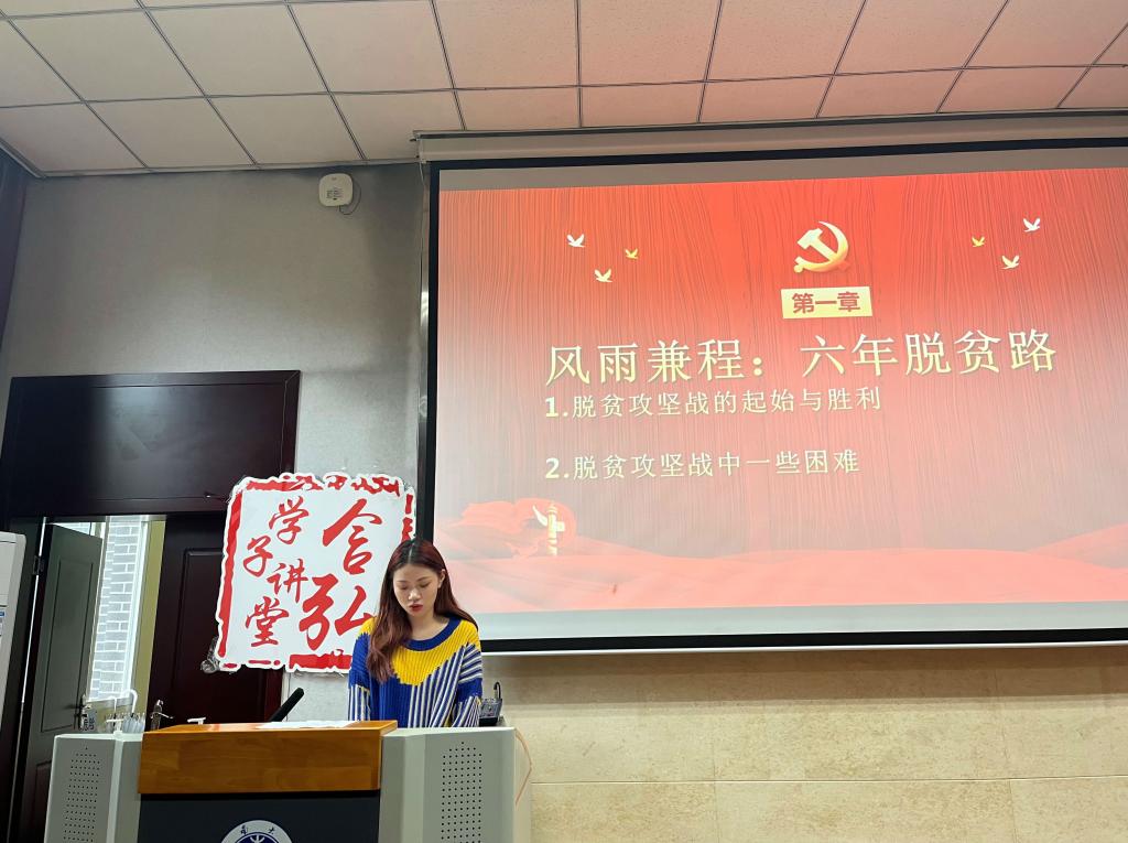 赵华延同学分享了“新闻人眼中的脱贫攻坚后评估”,结合个人在贵州的脱贫攻坚后评估工作经历进行了讲述。主要内容有以下三个方面:一、阐述了风雨兼程的六年脱贫路,向同学们展现了脱贫攻坚战的历程与遇到的困难;二、以贵州为例,向同学们展示了巩固脱贫攻坚的成果;三、为谱写乡村振兴新篇章,迎接党的二十大召开,赵华延认为应充分发挥脱贫攻坚的精神力量。