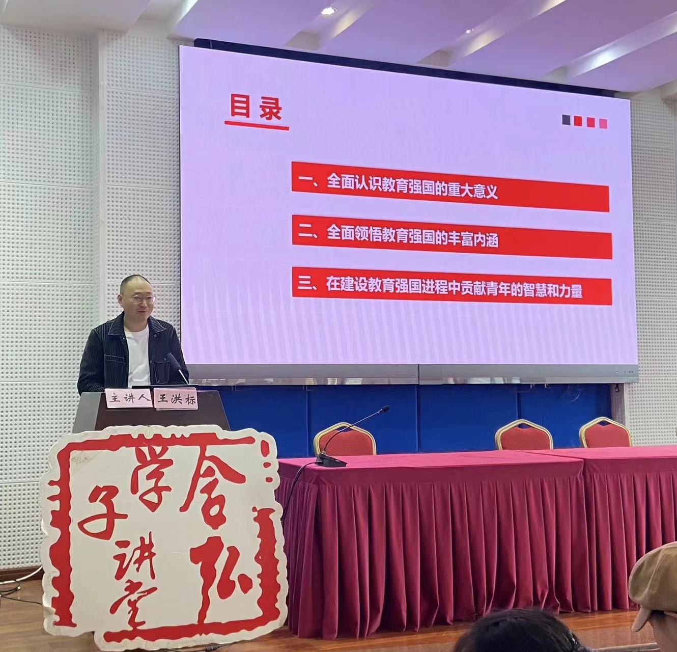 王洪标同学以建设教育强国为切入点,讲述了青年在建设教育强国进程中的使命与担当。首先他认为要全面认识教育强国的重要意义,并引用了习近平总书记的讲话:“建设教育强国,是全面建成社会主义现代化强国的战略先导、是实现高水平科技自立自强的重要支撑、是促进全体人民共同富裕的有效途径、是以中国式现代化全面推进中华民族伟大复兴的基础工程。”其次他认为要全面领悟教育强国的丰富内涵,分享了习近平总书记重要讲话中关于建设教育强国的中国特色、核心课题、生命线、重要任务、动力、教师队伍、对外开放等内容。最后他呼吁我们在建设教育强国进程中要积极贡献青年的智慧和力量。在宣讲的最后,以中国共产党员夏明翰为例,着重呼吁青年要有理想,就是要有“黄沙百战穿金甲,不破楼兰终不还”的精神信仰,在建设教育强国的路上,创造属于自己的无限可能。