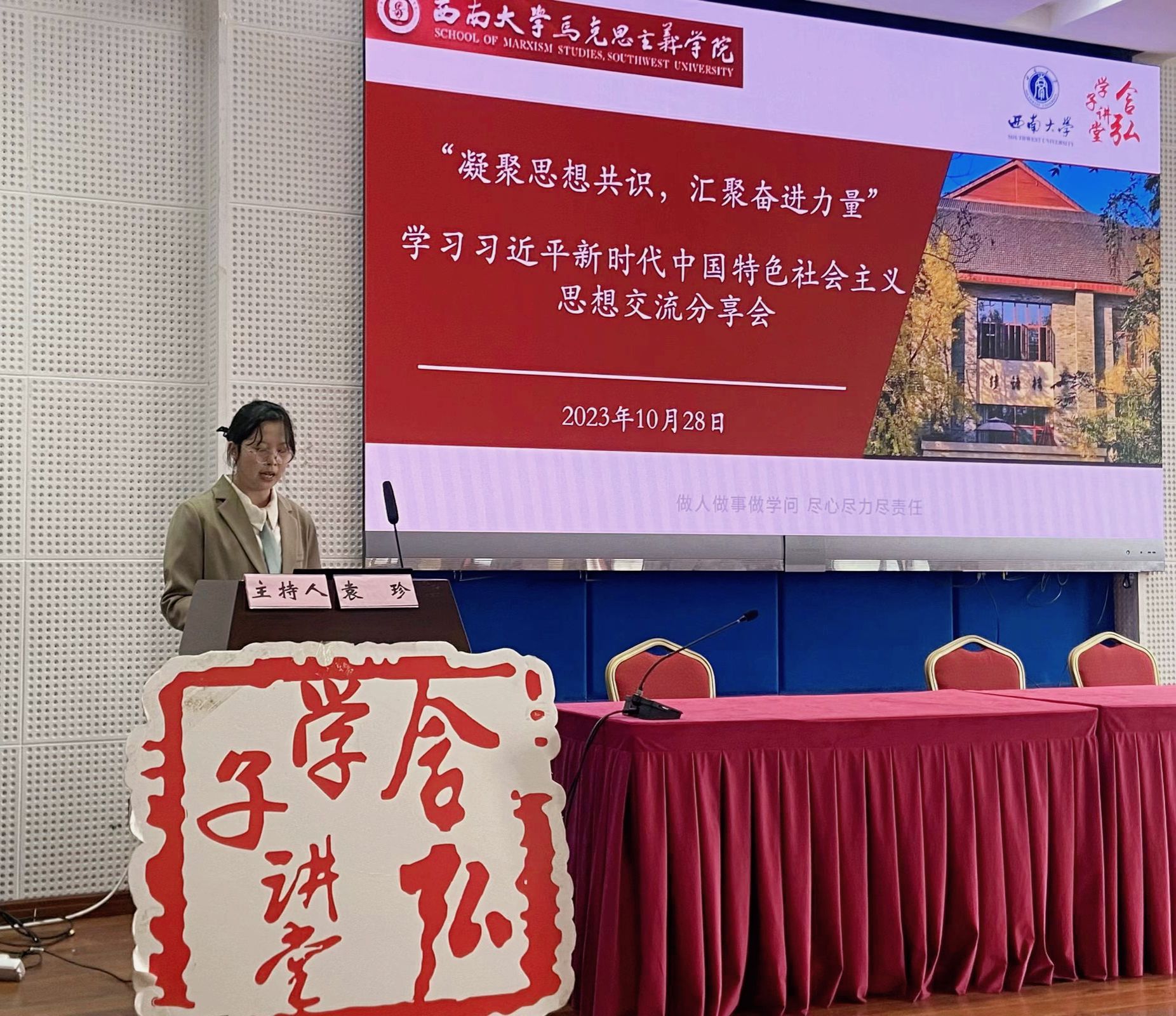 2023年10月28日上午,由PA视讯研究生会主办,马克思主义学院研究生会承办的含弘学子讲堂之“凝聚思想共识,汇聚奋进力量”学习习近平新时代中国特色社会主义思想交流分享会在马克思主义学院501会议室举行。本次分享会由马克思主义学院2023级党的建设专业硕士研究生袁珍同学主持,学院2022级马克思主义基本原理专业硕士研究生李文银同学、2023级马克思主义中国化研究专业博士研究生王洪标同学、2023级马克思主义发展史专业硕士研究生丁正同学以及2023级马克思主义中国化研究专业硕士研究生王海鹏同学担任主讲人。PA视讯研究生会学术交流中心代表、马克思主义学院研究生会、2022级研究生与2023级研究生参与了此次分享交流。