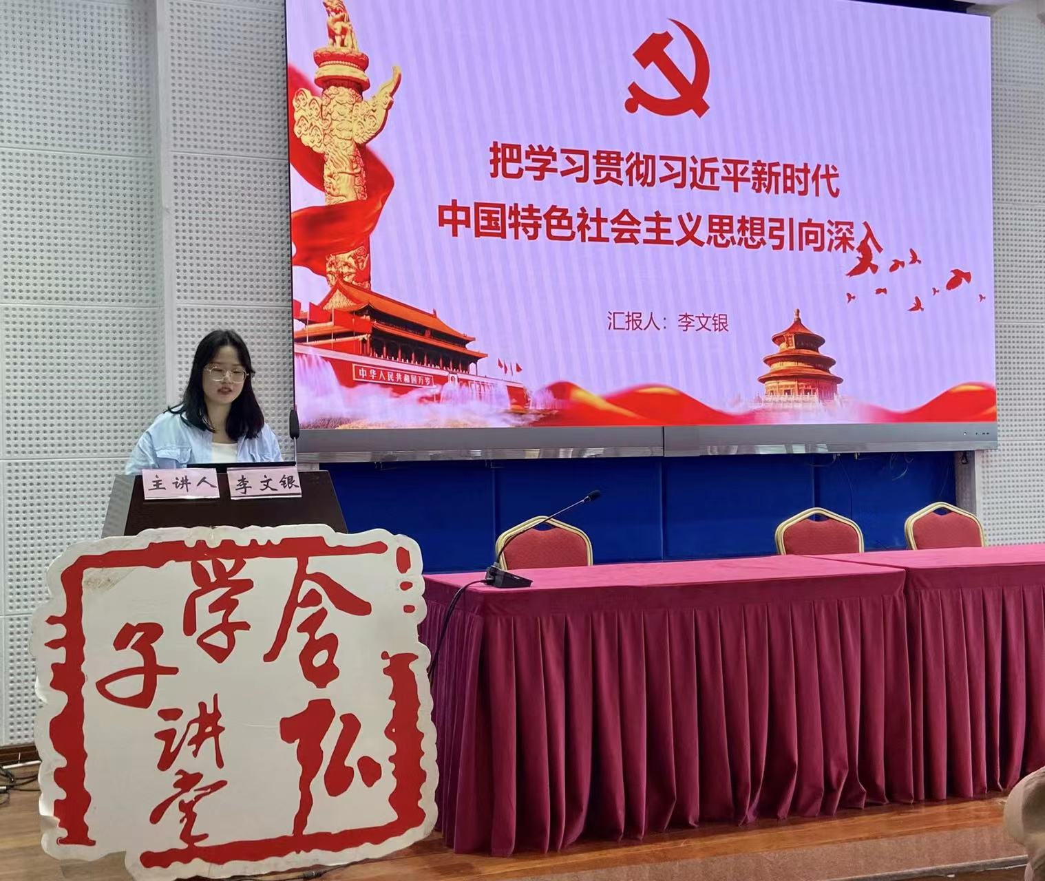 李文银同学围绕如何学习领会贯彻习近平新时代中国特色社会主义思想,提出首先要全面系统掌握习近平新时代中国特色社会主义思想的基本观点、科学体系。把握好习近平新时代中国特色社会主义的世界观、方法论,坚持好、运用好贯穿其中的立场、观点、方法。其次要自觉坚持用习近平新时代中国特色社会主义思想改造主观世界。以理论学习坚定理想信念、提升思想境界、加强党性锻炼。最后要自觉坚持用习近平新时代中国特色社会主义思想改造客观世界。她强调不仅要观察新时代、掌握历史主动,而且要把握新时代、抓住主题主线,还要引领新时代、走好新征程。