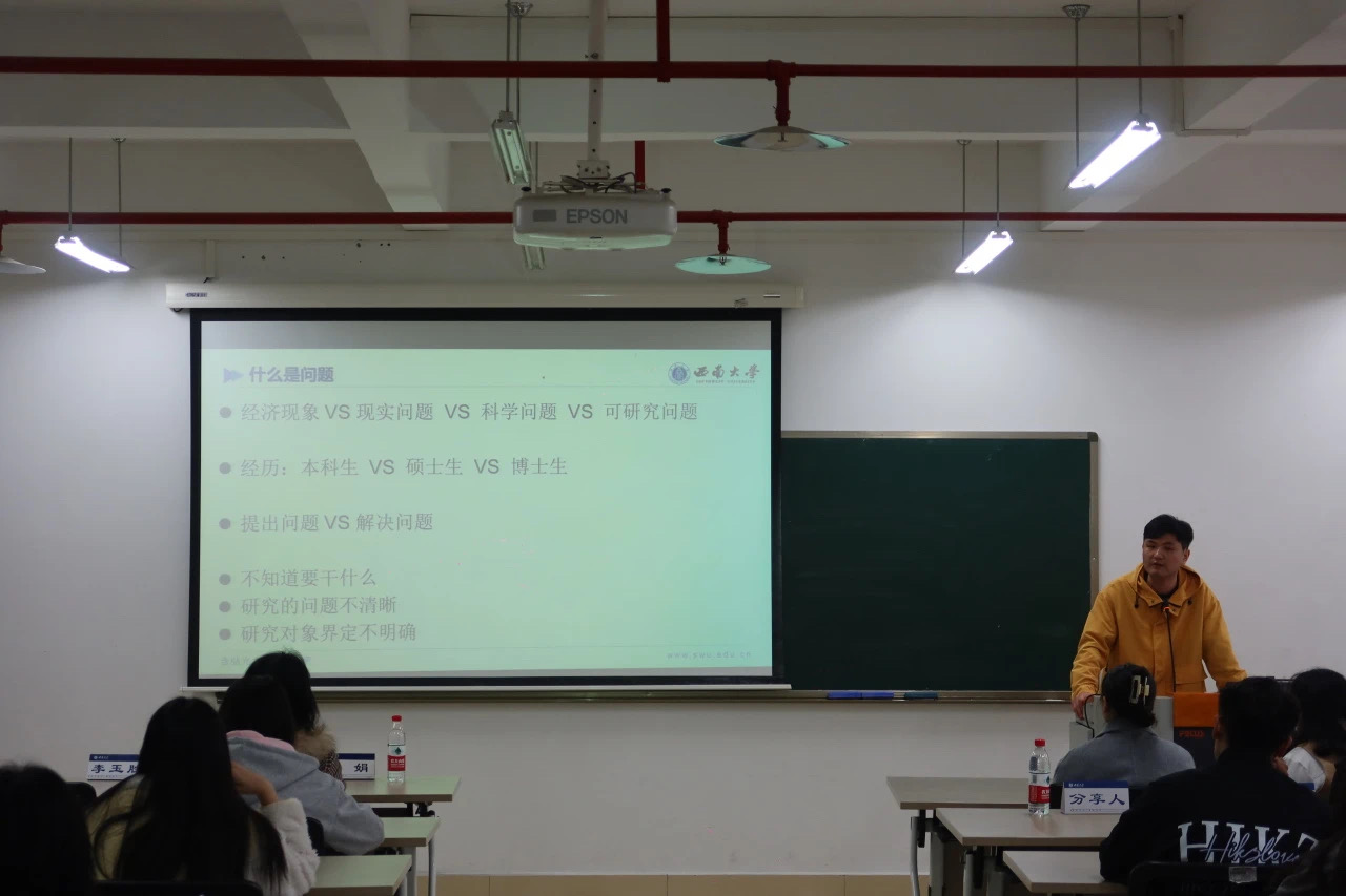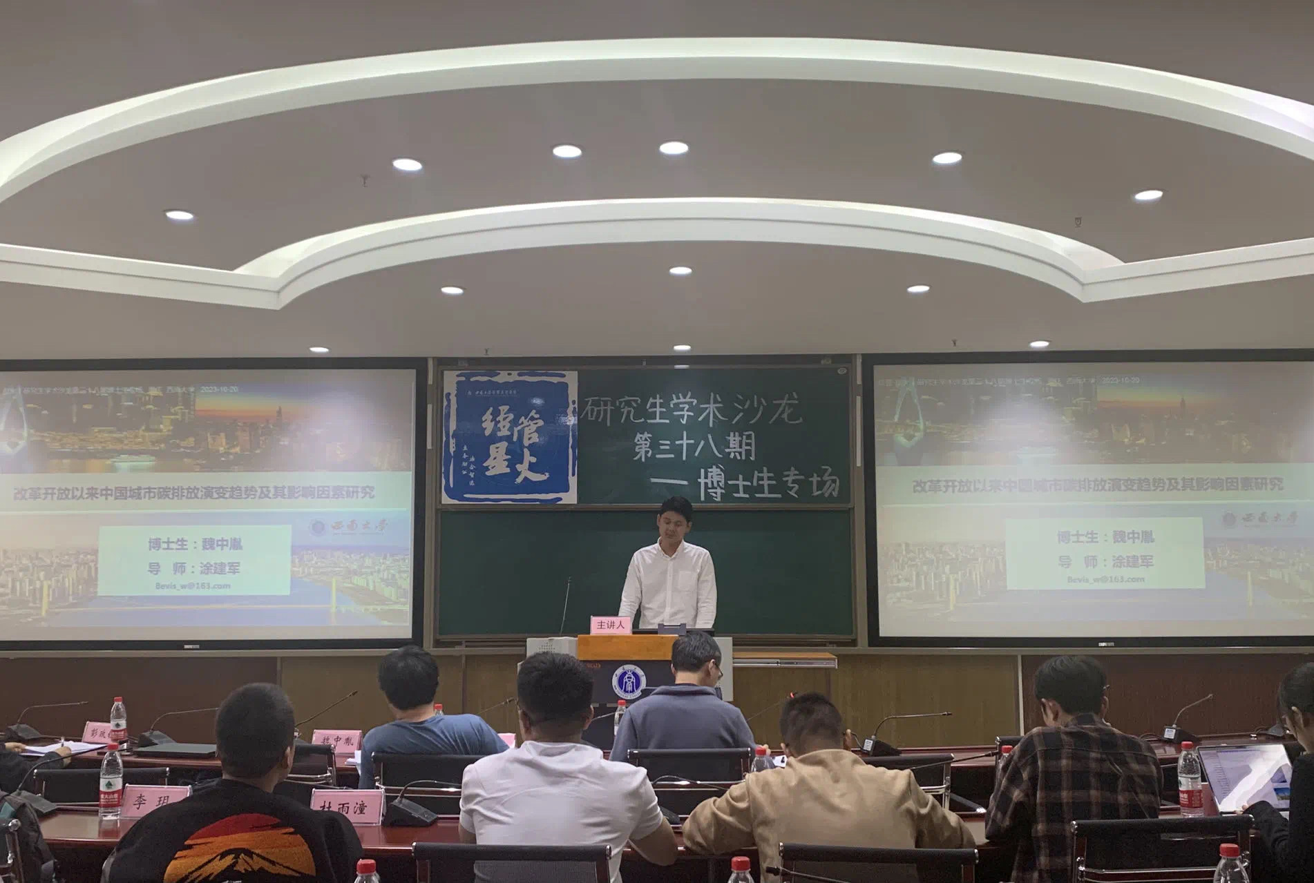 10月20日至12月8日期间,经济管理学院成功举办了第三十七期到第四十期研究生学术沙龙。共十位分享人为大家分享了《县域金融集聚何以影响农业全要素生产率?》、《改革开放以来中国城市碳排放演变趋势及其影响因素研究》等论文,每场两位老师就文章存在的问题与同学们进行交流讨论,从论文的逻辑性、观点阐述的准确性等方面发表意见,同学们在倾听和交流中收获颇多。该活动的开展有利于研究生开拓视野,提高科研能力。