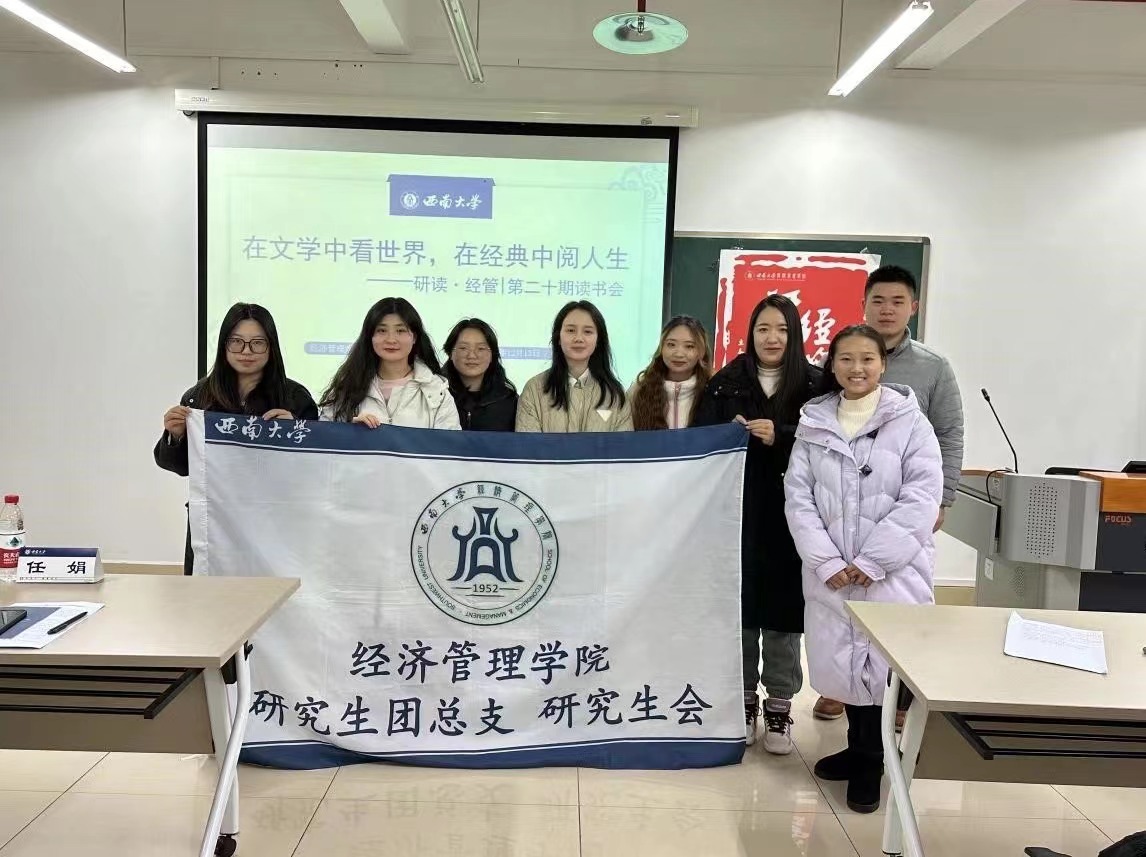 10月20日至12月15日期间,学院成功开展了“研读·经管”第十八期至第二十期读书会。读书会分为“重温峥嵘岁月 传承红色精神”、“拓宽专业视野 把握时代趋势”、“在文学中看世界,在经典中阅读人生——文学经典篇”三个主题。分享人围绕主题为同学们带来精彩的读书分享,使学院研究生能够更加体会到一本书的意义。读书会的开展有利于广大研究生开阔视野,增强爱国主义信念,在科研和生活的道路上更加积极乐观地前行。