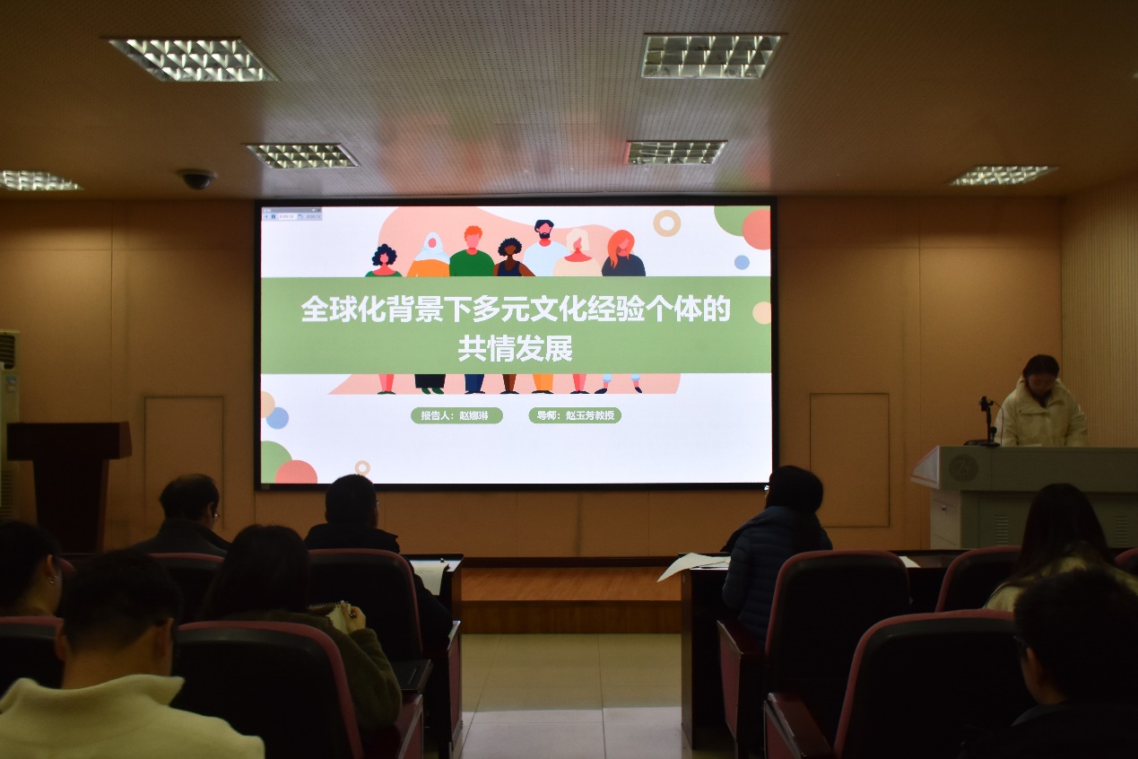 其次,莫雪敏同学报告了全球化背景下个人主义——集体主义文化取向类型的新变化及其对道德判断的影响。她提出根据文化道德理论,个人主义——集体主义文化与道德判断密切相关。随着全球化进程的加快,应当从一维视角转变为双维视角考察文化取向的新变化特征以及对道德判断的作用和其心理机制。研究通过文化取向量表、人际反应指数量表和道德判断量表进行调查,发现不同的文化取向在不道德行为判断上表现出显著的文化差异模式,帮助我们深化了对全球化背景下个人主义——集体主义文化取向的理解,同时促进了文化取向差异下道德判断方面的研究。