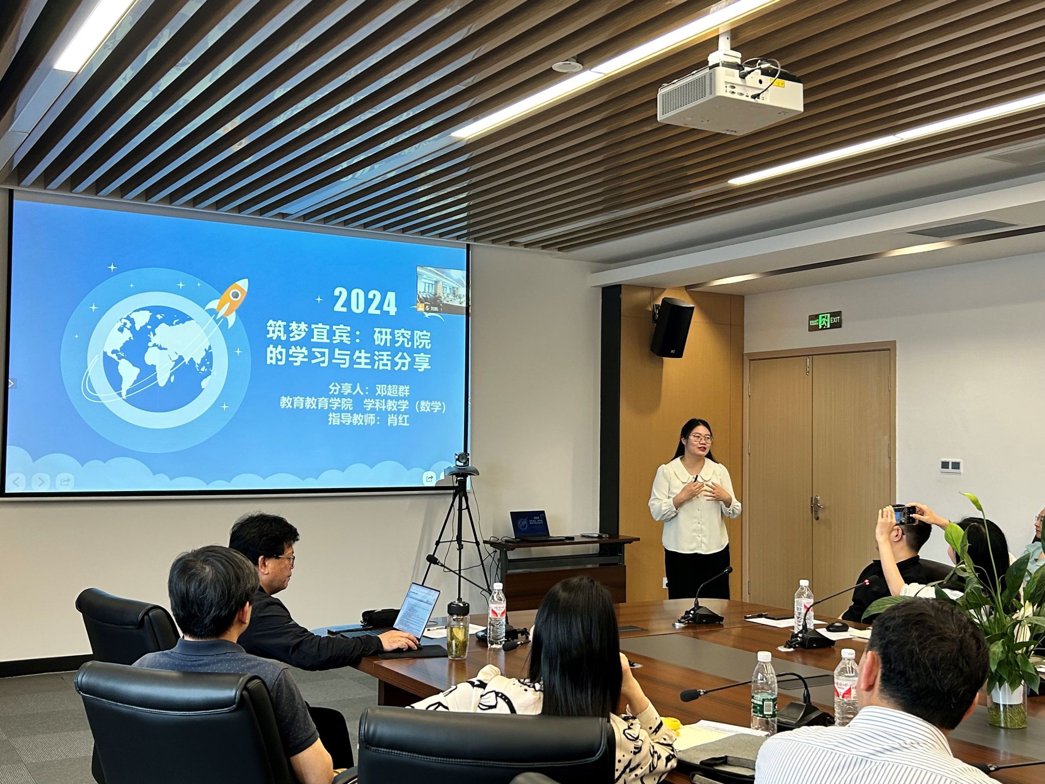 随后,教育学部常驻研究院博士研究生冯瑞、教师教育学院宜宾专项硕士研究生邓超群分别汇报了在研究院的学习经历和研究进展。冯瑞博士以“学在野—学术团体建设的有效路径”为题展开汇报,阐述了当前优秀学术团体的建设难点与学在野的含义、优势,提出三大实践策略:转变研究范式,开展实践、考察导向的科研项目;转变行为习惯,端正心态,提升自身沟通能力、表达能力;加强多方协同,创造良好的研究场域环境。邓超群同学结合教师教育专业特点,从“研究院日常生活、暑假社会实践、专业教育实践”三个方面进行了分享,表示在研究院感受了多元的学习氛围与温馨的生活体验,并表达了对研究院的深厚感情和未来职业发展的美好展望。