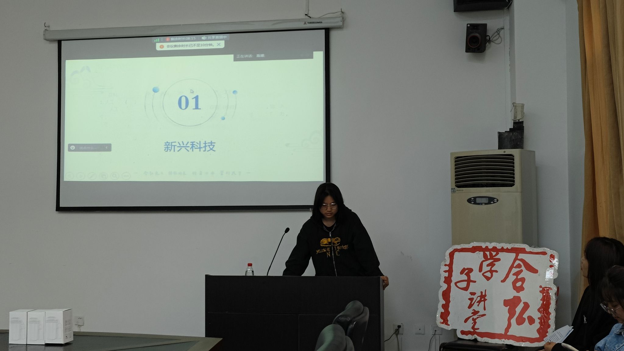 赵舒洋同学首先介绍了人工智能、物联网、基因编辑等新兴技术在我们生活中的应用,如虚拟现实技术通过模拟现实场景给用户带来全新的沉浸式体验,使人们能够身临其境地参与其中。接下来,赵舒洋同学对“元宇宙”这一概念作了更加详细的介绍。她指出,元宇宙是包含现实世界的数字化复制物和虚拟世界的创造物,是一个与外部真实世界既紧密相连又高度独立的平行空间,是永续的、广覆盖的虚拟现实系统,通过技术将网络、硬件终端和用户连接在一起。宣讲的最后,赵舒洋同学号召大家充分利用好当前新兴科技蓬勃发展所带来的历史机遇,从领导核心、价值导向和实践路径等方面不断努力,致力于将新兴科技与日常生活相融合,共同迎接和应对新科技革命浪潮的到来。