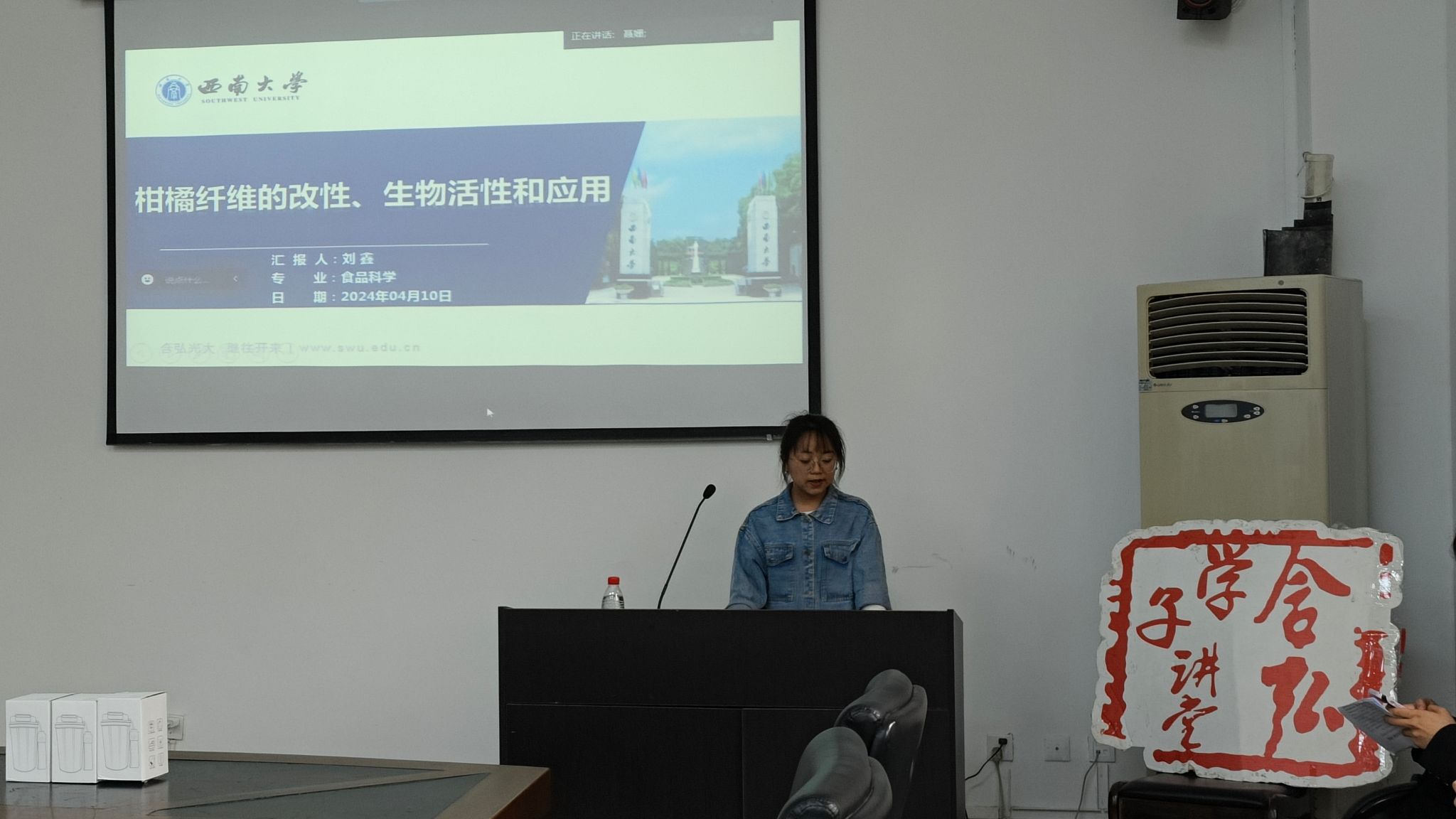 刘鑫同学首先从柑橘纤维的功能、提取方法以及实际应用等方面进行介绍,其次对其他天然植物原料中含有的膳食纤维进行了概述。结合当前科技飞速发展的迅猛趋势,她指出,在不久的将来,人工智能技术可能会被用于开发适合特殊人群的低脂肪、低能量、高纤维的功能性食品,而其中就包含柑橘纤维。但距离柑橘纤维的广泛应用仍有一些问题亟待解决。一方面,需要加大对柑橘纤维提取、改性以及功能的研究;另一方面,应更深入地研究柑橘纤维在饲料中的发酵机制,从而开发出一种经济、简单、可行的适合大规模生产的发酵方法,实现柑橘纤维在饲料行业中的高效利用。