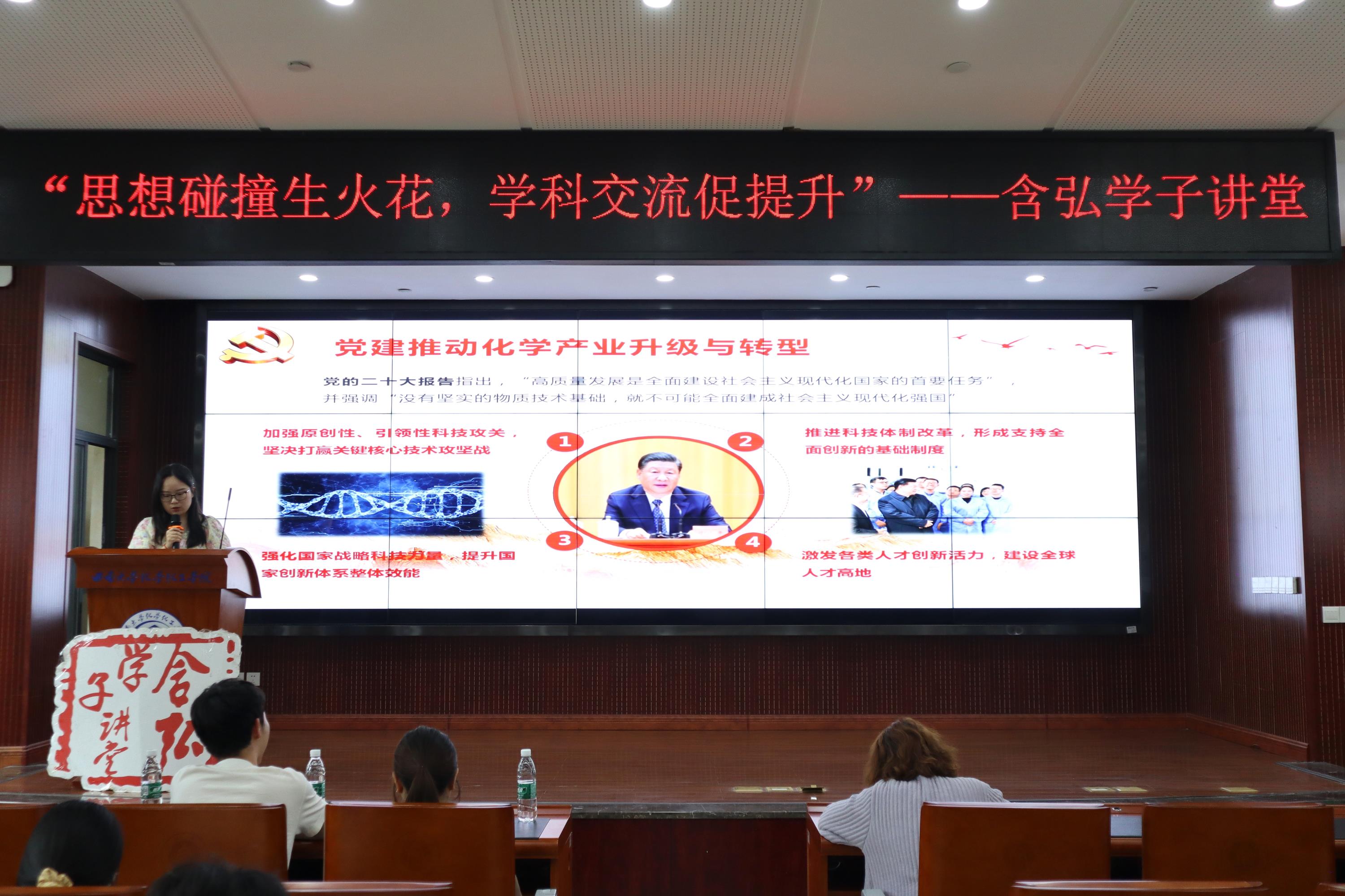 化学化工学院的陈怡霏同学以“党建创新与化学发展:理论与实践”为主题介绍了党建创新与化学发展之间的故事。她分别从党建创新理论与化学科技创新、党建推动化学产业升级与转型、党建创新促进化学人才培养和党建创新引领化学未来发展这四个方面向我们阐述了党建创新与化学发展之间的关系,她的讲解深入地将党建与化学发展相结合,展示了党建创新引领化学未来发展的重要意义。