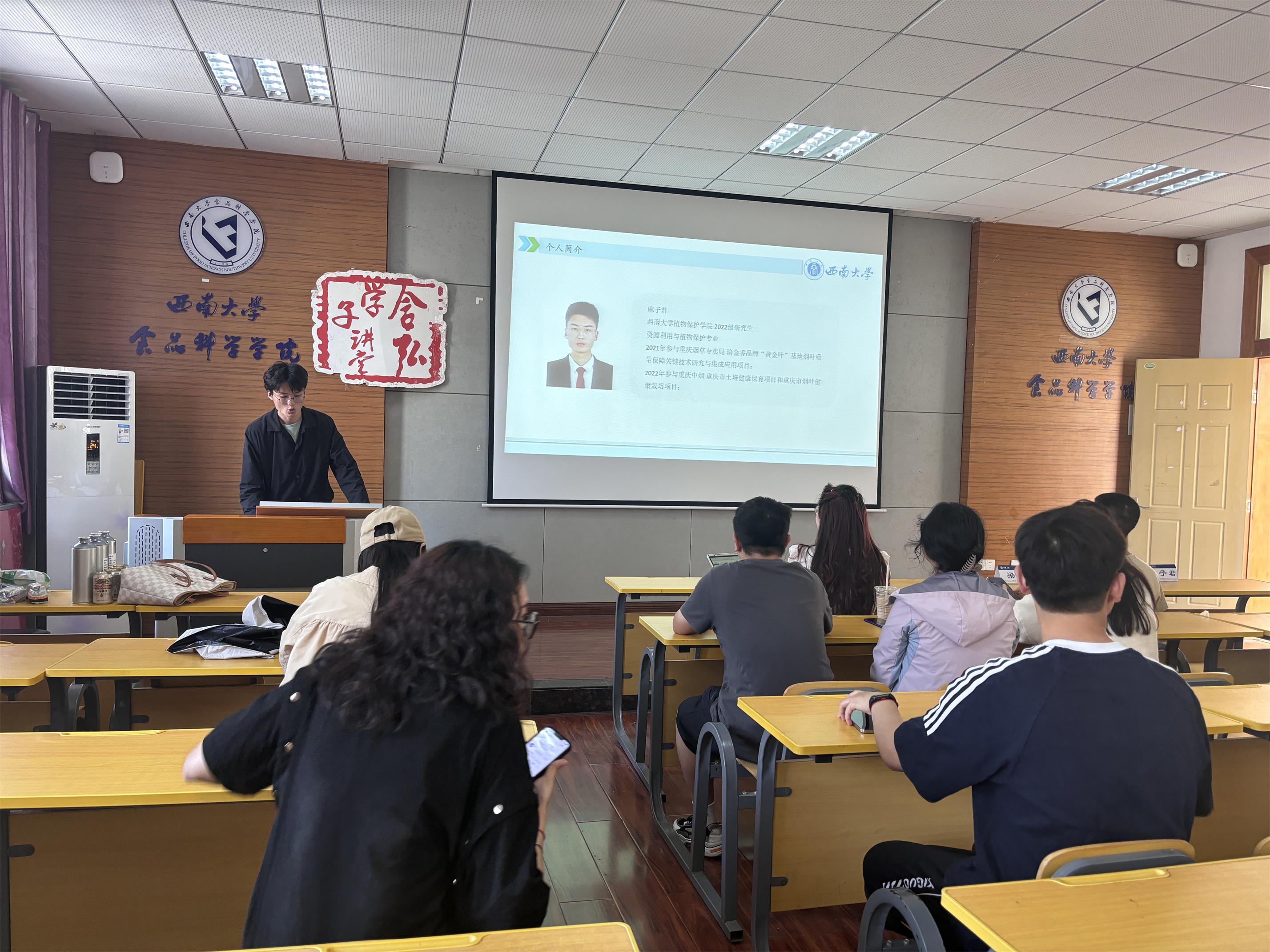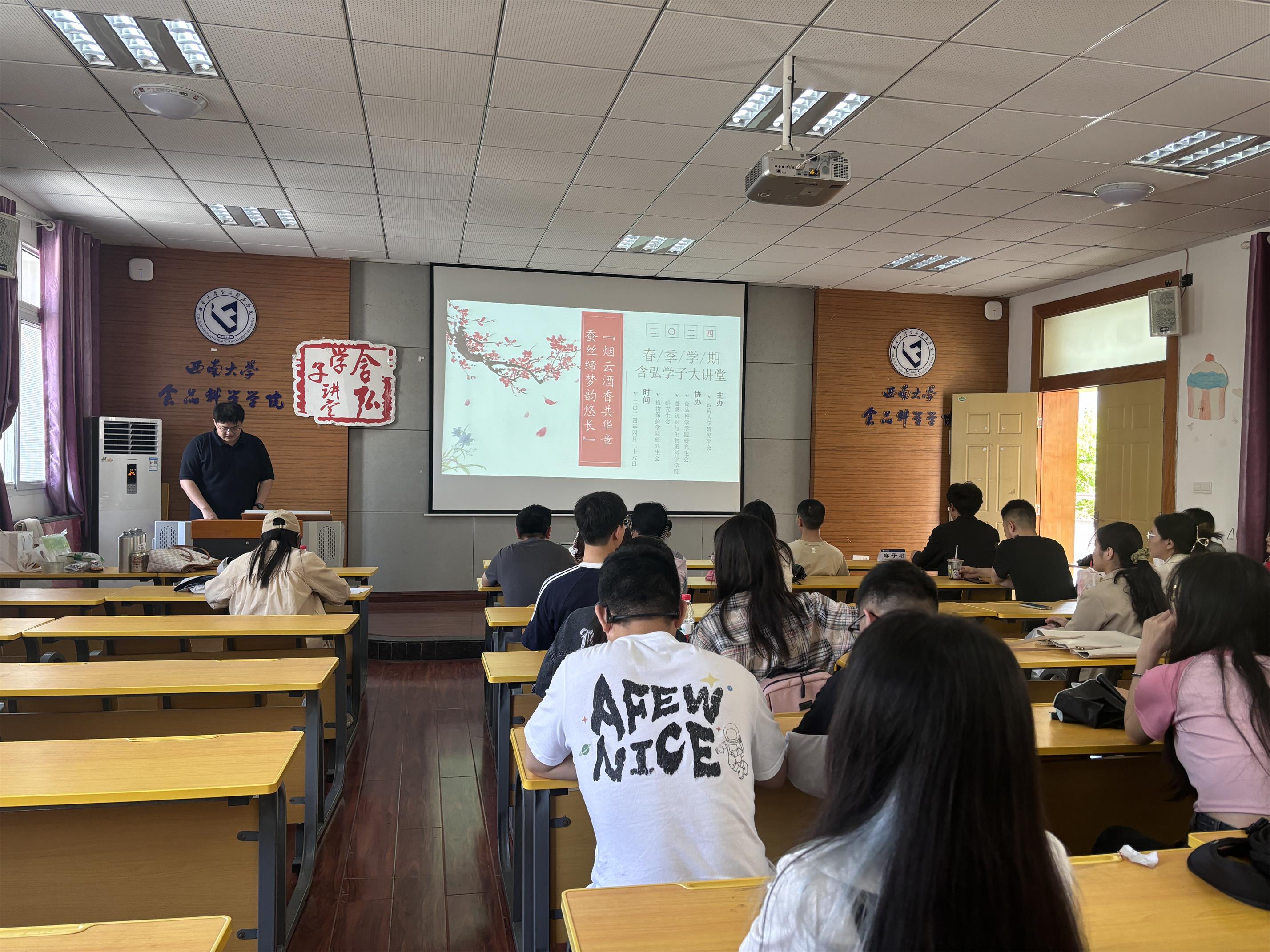 2024年4月26日下午,春季学期含弘学子讲堂之“烟云酒香共华章,蚕丝缔梦韵悠长”科普知识交流分享会在PA视讯39教食品科学学院312举行。本次交流活动由PA视讯研究生会主办,食品科学学院、蚕桑纺织与生物质科学学院以及植物保护学院联合承办。PA视讯研究生会代表、各学院研究生会全体成员以及部分硕士研究生参与此次活动,植物保护学院研究生郭建华主持。