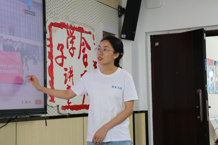 蒋静渝围绕社会实践活动就前期准备、开展实践、成果总结与个人感悟四个方面进行了经验分享。她讲到,开展社会实践活动的过程中一定要注重团队合作与积极沟通,多鼓励团队成员,让每个人发挥自己的优势,共同完成实践活动的目标。尤其是作为队长,应保持与参与者、工作人员和其他相关人员的密切联系,及时解决问题。接着,她展示了所在实践队的实践内容与成果,为想要参加此类实践活动的同学们提供了宝贵的经验与建议。