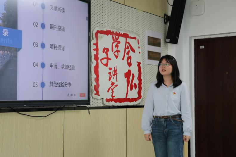 李志惠分享了有关科研方面的经验,她从文献阅读、期刊投稿、项目撰写、申博、求职经验五个方面进行了分享。首先,她介绍了常见的文献类型;接着,她建议同学们在期刊投稿时应先查询期刊水平和影响因子与相应的投稿和发表周期;此外,在项目撰写的过程中要多参考老师的项目;最后,她总结到,我们要有干劲和目标,多向师兄师姐请教,多参加社会实践活动和学术会议,在学习过程中,需要保持积极的心态,即使失败,也要回头看看自己努力的痕迹,一切都是值得的。
