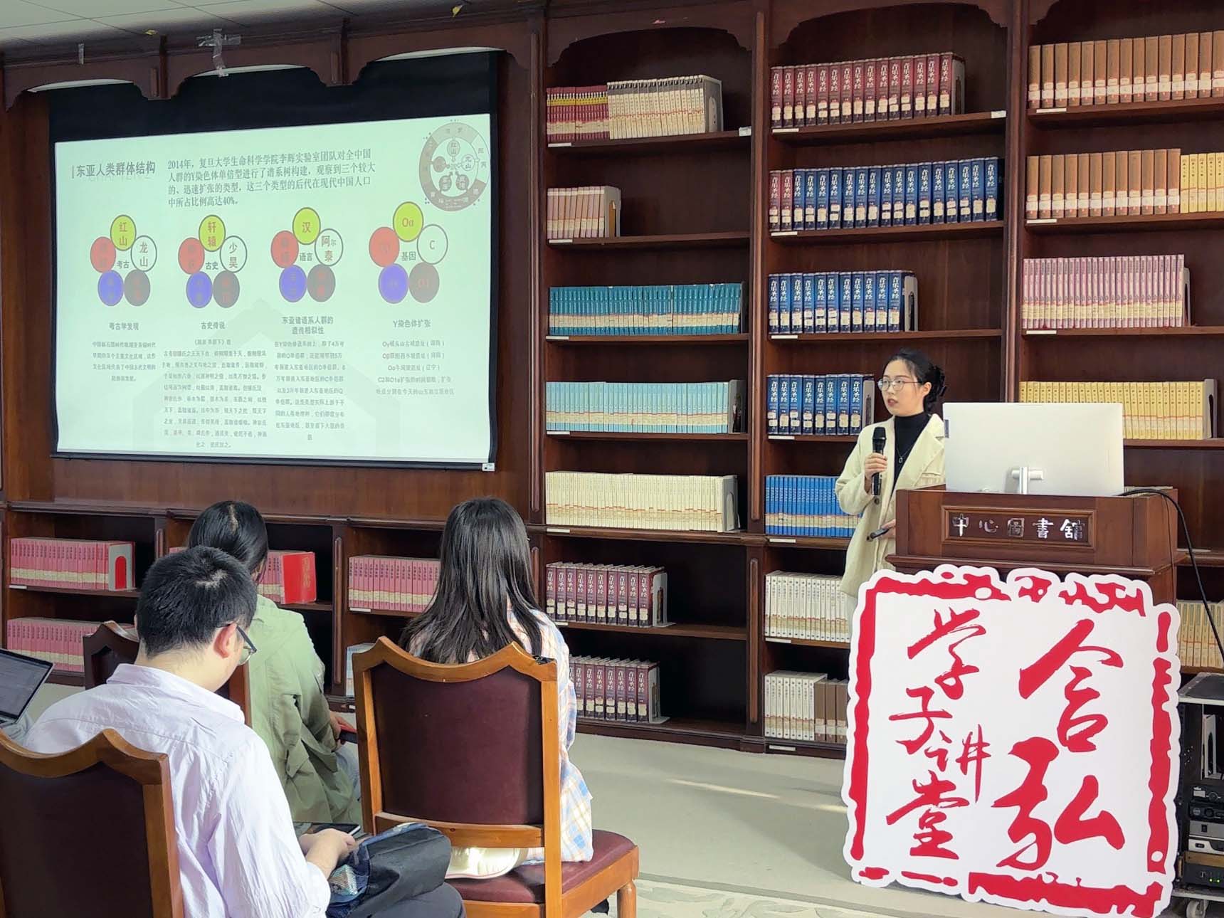 吴筱宇同学首先以汉语语言与文化传播作为切入点分析语言传播的主要动力,她结合前人的研究进展得出这一动力来源于人群的迁徙和扩散,而非仅仅是语言之间的横向交流。其次,她引入复旦大学课题组用于推断语言扩散模式的新算法——“语言速度场估计方法(Language velocity field estimation)”,基于物理学原理,展示了汉语方言与遗传学的关系。这种方法为我们提供了一种全新的视角来观察和分析语言的传播与变化。最后,她通过谱系地理学方法研究语言扩散,探讨了汉族语言与基因的共同演化。跨学科的研究方法为我们提供了理解汉语语言与传播的全新视角,通过结合语言学、地理学、物理学、遗传学和人类学的知识,我们能够更全面地理解语言与人类社会的共同发展。