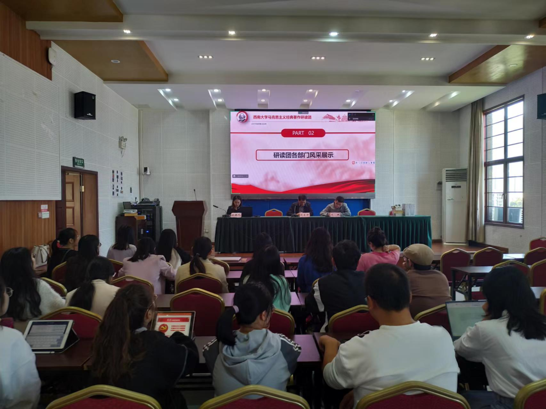 最后,刘书记进行总结讲话,刘书记回顾了研读团从2021年3月以来的创立历程,并强调研读团在马克思主义学院具有重要意义。他希望在新一届研读团干部的带领下,研读团的活动能越办越好,并祝愿各位研读团成员能在研读团中学有所获、不负韶华。在场同学深受启发,收获颇丰。此次团员大会在同学们的热烈掌声中落下帷幕。