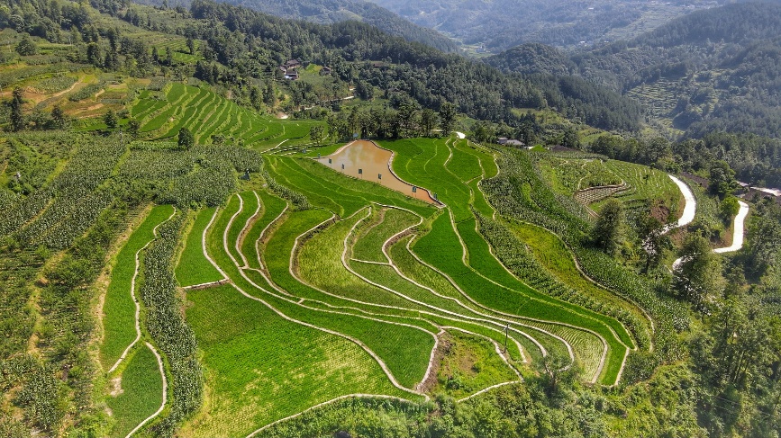 宣传短视频里的麻池村梯田景如画,碧天长,凭高目断,思量无限。比起城市里的烟火气,岭上云隐让人更加向往美好,更能感受到生命的旷然天真。标志着村落历史渊源的老屋,历经沧桑,经过风吹雨打,星罗密布地屹立在村子里,成为人们与家乡的纽带;带领村民脱贫致富的梯田鱼塘,宛若天地之间的一幅巨大的抽象画,漫步其中,像是来到童话世界一样让人心动。