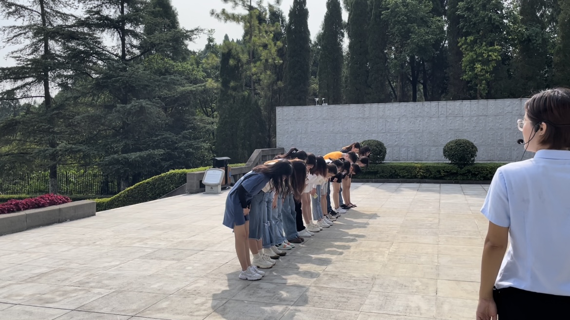 当天上午,在进入杨尚昆陵园后,队员们为清晨陵园中庄严肃穆的氛围所感染。苍松翠柏的青龙山;碧波荡漾的长河堰;稻浪万顷的大佛坝;宛延曲折的玉水溪;簇拥着一座朴实精致的陵园,这是共和国第四任国家主席杨尚昆同志的陵园。没有想象中的高大壮观,也没有想象中的气派与辉煌。这诚如他的人生与精神:云水襟怀,松柏气节。队员们在纪念碑前默哀一分钟,以敬畏之心告慰长眠于此的杨尚昆同志及其夫人,寄托哀思,表达最崇高的敬意和最深切的缅怀之情。